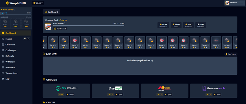 SimpleBNB " Podobny do simplebits, wypłaty na BNB