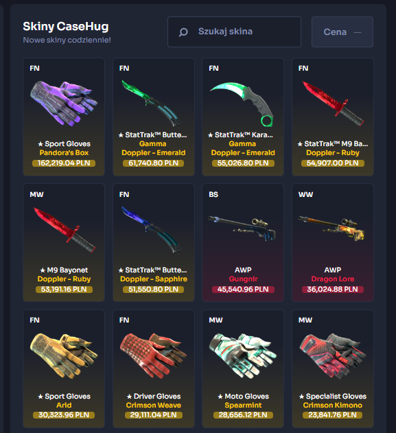Skórki CS2 na CaseHug - kolekcje skinów i ich zastosowanie w meczach