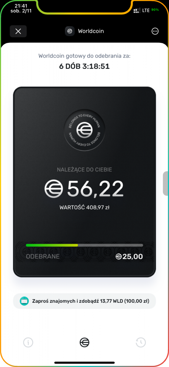 Niestety tylko dla Warszawiaków Krakowiaków i Wroclawia 200 zł w kryptowalucie dostępne bez depozytu bez kyc i do odebrania dzień po weryfikacji siatkówki oka w jednym z pięciu miejsc w Warszawie oraz od dziś we Wrocławiu i Krakowie. Wypłata bezpłatna na binance chociażby oraz inne gieldy Dodatkowo 100 zł w krypto za polecenie jeśli ktoś zweryfikuje konto w listopadzie oraz voucher na 50 zł do ubera, lime, glovo albo booksy Cześć. Pobierz World App i odwiedź Orb, aby zweryfikuj swoje konto do końca miesiąca, aby otrzymaj 53.85 WLD obecnie 540.03376744999997. Wprowadź mój kod w ustawieniach JU4BH90 Ref: https://worldcoin.org/join/JU4BH90 Czysty: https://worldcoin.org/join Skupuje też tokeny jak coś Żeby pokazać że realne i wypłacane:-
