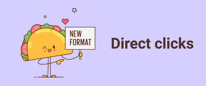2. Niedawno wprowadziliśmy nowy format! Uzyskaj bezpośrednie linki do swojej witryny z płatnością za każde kliknięcie. W przeciwieństwie do klasycznych okien pop-under, kliknięcia bezpośrednie zapewniają docelowy ruch wyższej jakości. Ten rodzaj reklamy daje doskonałe rezultaty we wszystkich branżach. Tutaj możesz zobaczyć niektóre oferty.