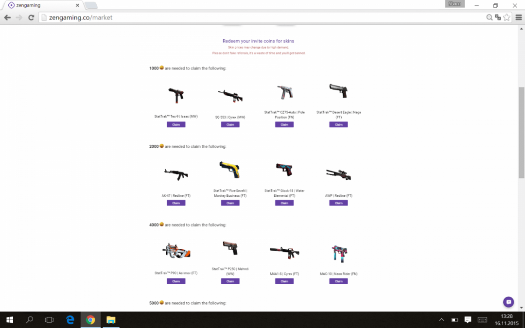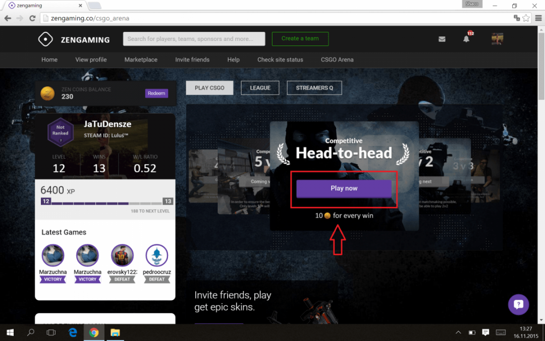 Zapraszam wszystkich do gry na arene 1v1 w którym za wygraną dostajemy pkt i możemy wymienić na skiny Mi się udało już wyciągnąć AK47 Vulcan http://zengaming.co/r?zen=307532 Gramy oczywiście w cs:go Rejestrujemy się łączymy konto z platformą steam i to w sumie tyle reszta w zdj