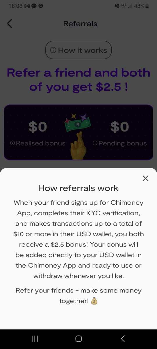 Instrukcja: 1. Pobierz apke Czysty link do apki : https://play.google.com/store/apps/details?id=com.usescrim.app 2. Rejestracja + KYC > trwa do kilkunastu minut (u mnie tak trwało). 3. Zrób transakcje na łączną kwotę 10 USD (bonus wpada od razu po zrobieniu transakcji, nic nie tracisz a zawsze 2,5 $ do przodu😅) Bonus jest wypłacalny od razu po jego otrzymaniu! Poza tym apka jest mega przyjemna i myślę że wiele osób skorzysta ogólnie z przelewów w tej apce 🙂 Opis : Chimoney App to aplikacja finansowa do szybkiego przesyłania i odbierania pieniędzy na całym świecie. Działa jak wielowalutowy portfel (USD, CAD, NGN, MXN). Umożliwia natychmiastowe przelewy do ponad 100 krajów (na konto bankowe, portfel mobilny, karty podarunkowe, doładowania telefonu). Możesz przyjmować płatności od klientów globalnych poprzez link, e-mail lub numer telefonu. Oferuje korzystne kursy wymiany, brak ukrytych opłat i bezpieczeństwo dzięki KYC i szyfrowaniu. Dostępna na Androida i iOS, szczególnie popularna wśród freelancerów, studentów i osób pracujących za granicą.- 10 odpowiedzi