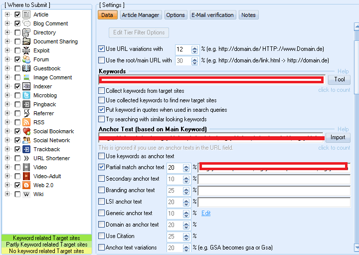 Witam, Pomóżcie mi co mam źle ustawione... GSA dobrze dodaje backlinks ale źle anchor text do nich... Anchor text to albo puste [empty] albo link do strony albo jakieś dziwne słowa.... Nie mam zaznaczone generic anchor...