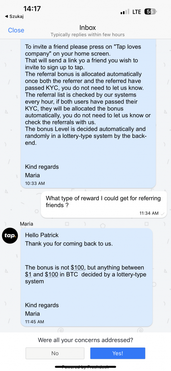 Nowa promocja od Tap global - apka, która może służyć do tradingu kryptowalut i płatności. OD 1$ DO 100$ BEZ DEPOZYTU TYLKO KYC 🥳🥳 Co zrobić, żeby otrzymać BONUS DO WYPŁATY OD RAZU: 1. Pobrać aplikację z tego linku -> https://tapglobal.onelink.me/JSds/9b5gh2i3 JEŻELI NIEDOSTĘPNA APKA: https://apksos.com/app/com.tapngo.tap (WAŻNE PO POBRANIU NA ANDROID I ZAINSTALOWANIU APLIKACJI NIE URUCHAMIAJ JEJ TYLKO NASTĘPNIE KLIKNIJ W TEN LINK I URUCHOM https://tapglobal.onelink.me/JSds/9b5gh2i3) Czysty link: https://www.withtap.com/ 2. Zarejestrować się i podczas rejestracji wprowadzić kod polecającego: TNG-848-378-7C44 3. Zrobić weryfikację KYC oraz przesłać wyciąg bankowy (kiedy wyskoczy informacja czy jest więcej stron należy zaznaczyć "nie" bo tylko pierwsza strona jest najważniejsza) 4. Po kilku godzinach konto będzie zweryfikowanie i do końca dnia otrzymacie bonus do 100$. 6. Wypłacamy na konto lub wykorzystujemy wirtualną kartę, żeby wydać środki. Nie zarejestowanie się z linku polecającego lub nie wpisanie kodu polecającego skutkuje nie otrzymaniem bonusu. **Ale ogólnie jak wybierzesz ze chcesz wgrać zdjecie z galerii to mozesz to przełączyć na „files” i wybrac plik PDF- 25 odpowiedzi
