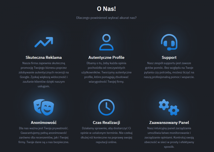 Dokładny opis usług: Wykonuję profesjonalne opinie i rekomendacje dla firm oraz osób prywatnych na dowolnej platformie Wszystkie opinie wystawiane są ręcznie, z realnych kont, które nie były zakładane przez boty ani generatory. Dzięki temu opinie są naturalne i trudne do odróżnienia od organicznych. Każda platforma posiada gwarancję na wystawioną opinie do 60 dni Jeśli nie znalazłeś w opisie swojej platformy - istnieje możliwość wystawienia opinii również na innych serwisach. Dodatkowo oferuję skuteczne usuwanie negatywnych opinii - zabezpieczenie wizerunku i czyszczenie profilu. Czas realizacji: Opinie pozytywne: od 12h do 72h (w zależności od platformy, ilości oraz interwału czasowego). Usuwanie negatywnych opinii: czas indywidualny (zależny od skali problemu i platformy). Kontakt: Kontakt przez forum (preferowany) Kontakt przez telegram: @Kopczan Cena za jedną opinie (przy większych ilościach rabat): Opinie: Google - 30 zł Booksy - 30 zł Booking - 30 zł GoWork - 20 zł Usuwanie negatywnych opinii: od 500 zł Dostępne formy płatności: Przelew bankowy BLIK Revolut Crypto (USDT/BTC/ETH) - preferowane Inne - do uzgodnienia