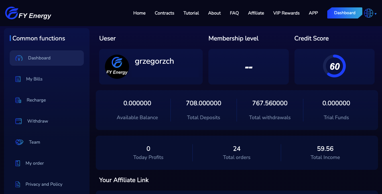 Chciałem Wam przedstawić platformę którą ostanio tesowałem, jest nią FY Energy. Po rejestracji otrzymujesz 20 $, za które to środki możesz codziennie kupować darmowy jednodniowy kontrakt po zakończeniu otrzymujesz 20,8 $. Za wpłacone dodatkowe środki wypujesz kotrakty o różnej długości i różnej cenie. Zawsze po zakończeniu kontraktu możesz wybrać depozyt z zarobioną kwotą lub reinwestować. Minimalna wpłata i wypłata to 100 $. Poniżej przykładowe kontrakty: poniżej moje wpłaty: i wypłaty: Pierwsza wypłata była odrzucona, ale okazało się, że trzeba napisać na czacie i zweryfikować adres email na który przychodzi kod. Kolejne wypłaty dochodzą już bezproblemowo już po kilku lub kilkunastu minutach. A to podsumowanie: W tym projekcie zarobiłem na razie 59.56$. Po zakończeniu każdego kontraktu staram się wybierać wszystko, aby wykorzystać zarobione kwoty w innych projektach. Można by reinwestować i czekać aż się uzbiera 100$ zysku i wtedy wypłacać tylko zysk. Wypłaty są bez opłat. Mój link polecający do rejestracji: https://fyenergy.com/index/index/register.html?invite=792274547 Czysty link do rejestracji: https://fyenergy.com/index/index/register.html Link dla informacji: https://fyenergy.com/index.html Jak masz jakieś pytanie pisz na PRIV lub na Telegram: https://t.me/GrzegorzStW Oczywiście nie gwarantuję , że opisana przezemnie platforma będzie zawsze działać i wypłacać. Jeśli chcesz sprawdzić zacznij inwestować od małych kwot. Ja na razie nie miałem problemów. Pozdrawiam