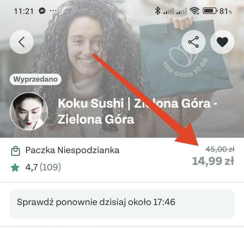 Voucher 10 zł na jedzenie. Aplikacja Too good to go umożliwia odbieranie jedzenie z restauracji po niższej cenie. Przykładowo ja zamawiam sushi i zamiast 45 zł płacę tylko 15 !!! Reflink: https://m8qxq.app.goo.gl/ReMW5cmzF3mZYZ4q8 Czysty link: https://play.google.com/store/apps/details?id=com.app.tgtg