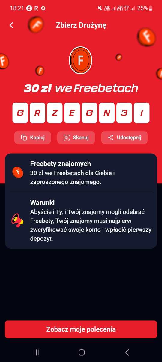 PONOWNIE 30ZŁ OD BETCLIC Witam mam do zaoferowania 30zł freebetu (darmowy zakład) w Betclic. 1. Rejestrujesz się na stronie i wpisujesz kod polecajacego: GRZEGN3I <--- TO WAŻNE https://m.betclic.pl/ GRZEGN3I <--- TO WAŻNE 2. Przechodzisz szybka weryfikację KYC 3. Wpłacasz minimum 10zł ( tyle wystarczy by odebrać bonus) 4. Ja i Ty otrzymujemy freebet 30zł bez żadnych obrotów! 5. Postaw zakład za Freebet po minimum kursie 2,14 I to wszystko, warunki spełnienie hajs można wyplacac łącznie łącznie z tymi 10zl. Edit: dodam jeszcze że na betclic gra się całkowicie bez podatku Edit 2: wyplaty na konto bankowe są natychmiastowe (mi na ipko dosłownie w 5 sekund przychodzą pieniądze wypłacone)