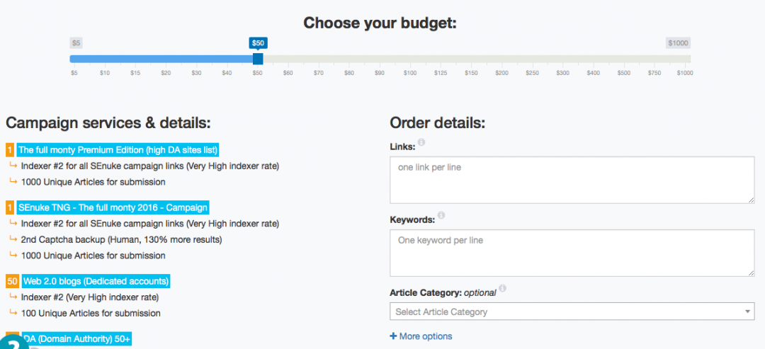 SEOeStore - Jest to serwis oferujący budowanie backlinków. Posiada bardzo rozbudowany i intuicyjny panel, dzięki któremu szybko zbudujemy kampanie, lub wykupimy pojedyncze linki. Postaram się napisać szczegółową opinię o tym Panelu SEO. Myślę, że jest numer jeden jeśli chodzi o serwis z najtańszymi usługami SEO. Oferują wiele różnych przydatnych usług SEO, które pozwolą nam wypozycjonować stronę w wyszukiwarkach. Najtańsze backlinki u nich kosztują 0,0003$. Oczywiście są to śmieciowe linki, ale dla tier 3 myślę, że nigdzie nie znajdziemy taniej, a sami za takie pieniądze również ich nie zbudujemy. Więc w kwocie 0,30$ mamy 1000 linków słabej jakości, którymi możemy wzmocnić wyższe tiery naszej piramidy linków. Pozwole sobie wstawić taką tabelkę z cennikami ich usług. Nazwa/kod Opis Min. ilość Cena za sztukę WEB2 Web 2.0 blogs (Shared accounts) 10 $0.07 WEB2+ACC Web 2.0 blogs (Dedicated accounts) 20 $0.13 DA70 PR9 – DA (Domain Authority) 70+ 1 $0.25 DA50-DO DA (Domain Authority) 50+ Do-follow 10 $0.2 DA50 DA (Domain Authority) 50+ 10 $0.15 DA30-DO DA (Domain Authority) 30+ Do-follow 10 $0.1 DA30 DA (Domain Authority) 30+ 10 $0.07 FM+ The full monty Premium Edition (high DA sites list) 1 $5 FM-TNG SEnuke TNG – The full monty 2016 – Campaign 1 $2 FM-2015 SEnuke – The full monty template 2015 – Campaign 1 $1.5 FM-2014 SEnuke – The full monty template 2014 – Campaign 1 $1.5 FM-V4 SEnuke – The full monty template V4 (2012) – Campaign 1 $1.5 EDU .EDU backlinks (include .edu.xxx domains – mix platforms) 50 $0.004 DOFOLLOW Do-follow backlinks (mix platforms) 100 $0.001 MIX Mix platforms backlinks 100 $0.0005 ARTICLES Article directories backlinks (contextual backlinks) 100 $0.001 PROFILES Mix profiles backlinks (forum & social networks) 100 $0.00033 SN-P Social networks profiles backlinks 100 $0.00033 FORUM-P Forum profiles backlinks 100 $0.00033 WIKI Wiki backlinks (mix profiles & articles) 100 $0.0005 WIKI-A Wiki articles Backlinks (contextual backlinks) 100 $0.00067 COMMENTS Blog/image/other comments backlinks 100 $0.001 F-POST Forum posting backlinks (NOT recommended) 100 $0.001 SHORTENET URL shortener backlinks 100 $0.00033 EXPLOIT Exploit backlinks 100 $0.00033 Oprócz tego możemy dołączyć extra usługi wzmacniające skuteczność i jakość linków. Nazwa/kod Opis Cena za sztukę i Indexer #1 (95%+ Crawled rate) $0.0001 i2 Indexer #2 (Very High indexer rate) $0.001 i3 Indexer #3 (Maximum indexer rate) $0.0025 s-i Indexer #1 for all SEnuke campaign links (95%+ Crawled rate) $0.1 s-i2 Indexer #2 for all SEnuke campaign links (Very High indexer rate) $1 s-i3 Indexer #3 for all SEnuke campaign links (Maximum indexer rate) $2.5 c 2nd Captcha backup (Human, 130% more results) $2 rtcl100 100 Unique Articles for submission $0.1 rtcl500 500 Unique Articles for submission $0.5 rtcl1000 1000 Unique Articles for submission $1 rtcl5k 5,000 Unique Articles for submission $5 W panelu mamy zakładkę Single order. W tej zakładce wybieramy rodzaj linków z tabeli wyżej, ich ilość, dodatki. Mamy okno do wpisania linków, słów kluczowych Raporty SEOeStore panel Po pomyślnym zamówieniu usługi SEO będziemy mieli ukazany status procesu. Zamówienie oczekujące ma status PENDING, a następnie po pewnym czasie zmieni się na PROCESSING i wreszcie COMPLETED. Gdy zamówienie jest zakończone będziesz mógł pobrać raport jednym kliknięciem. Istniejące raporty będą zawierały CSV i TXT w jednym skompresowanym pliku ZIP. Raporty są przejrzyste i świetnie się nadają dla resellerów. Kolejna opcja to kampanie seo. Tutaj w odróżnieniu do Single orders, czyli inwidualnych wyborów backlinkowania wybieramy tylko budżet a panel ma przygotowany dla nas już plan linkowania. My wpisujemy tylko tak jak poprzednio, linki, oraz nasze słowa kluczowe. Jeżeli chodzi o kwestie ładowania naszego portfela seoestore to mamy do wyboru kilka opcji. Klikamy zakładkę ADD FUNDS aby dodać środki. Osobiście doładowuje konto tylko przez paypal. Środki są na koncie w ciągu kilku sekund:) Inne opcje to payoneer, karta kredytowa, bitcoin, payza, neteller. Program posiada również program partnerski oferujący 10% doładowanych środków przez naszych poleconych. Nie rzadko wysyła kody na darmowe kilka dolarów na pozycjowanie, oraz różnego rodzaju bonusy. Moja opinia: Osobiście korzystam z panelu seoestore od ponad pół roku. Jestem również resellerem ich usług, i kilkadziesiąt (ponad 40) klientów bardzo było zadowolonych i wraca do mnie po kolejne zamówienia. Regularnie wykupuję u nich usługi linkowania dla moich stron. A najczęściej kampanie senuke. Osobiście nie mam kasy na oprogramowanie, captche, proxy itp. a tutaj za zaledwie kilka dolców mogę tych kampani puścić kilka Zapraszam do korzystania z tego serwisu, dzielcie się swoimi opiniami. Mam nadzieję, że jeżeli ktoś nie znał serwisu to dobrze mu go zaprezentowałem:) Tak jak wspominałem istnieje program partnerski, dlatego, jeżeli ten artykuł skusił cię do rejestracji w owym serwisie to zapraszam do rejestracji z mojego refflinku. Nic nie tracisz a ja dostanę 10% jak w przyszłości doładujesz swoje konto:) REJESTRACJA REFFLINK : http://panel.seoestore.net/?ref=kris5421 link bez reff: http://panel.seoestore.net/- 6 odpowiedzi