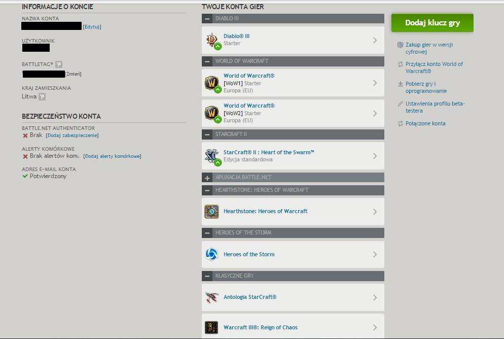 1. Nazwa przedmiotu:Konto battle.net 2. Opis przedmiotu: Mam na sprzedaż używane konto battle.net. Na koncie znajdują się następujące gry: - Starcraft II (Wol + Hots) [liga - platyna] - Antologia Starcraft -Warcraft III: Reign of Chaos 3. Źródło pozyskania: Konto kupiłem od innego użytkownika. 4. Zdjęcia: 5. Kontakt: skype- wicherek498; email- wronski.m@o2.pl 6. Cena:35zł 7. Sposób zapłaty:Przelew (Mogę wystawić na allegro) Uwaga: Nie znam odpowiedzi na sekretne pytanie, przez co przypisanie konta do nowego email nie jest możliwe. Dlatego podam dane konta email, do którego jest przypisane konto. sc3.bmp