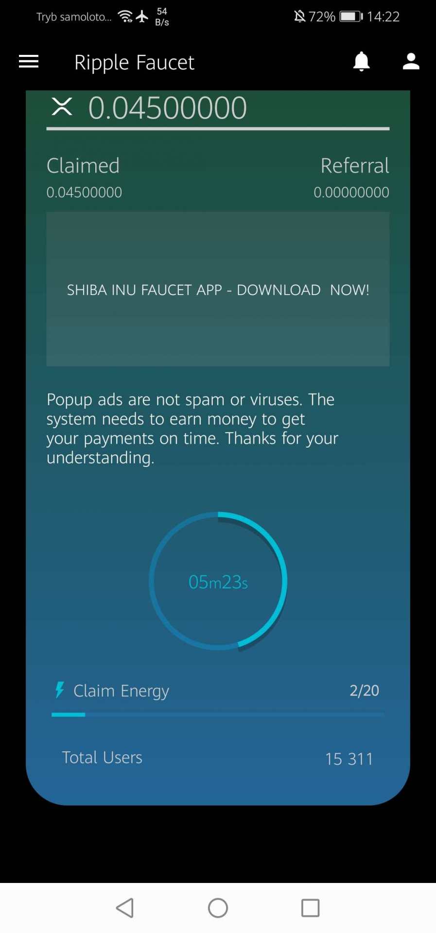 Dodatkowe informacje: Darmowe XRP co 10 minut, wystarczy klikać co 10 minut!