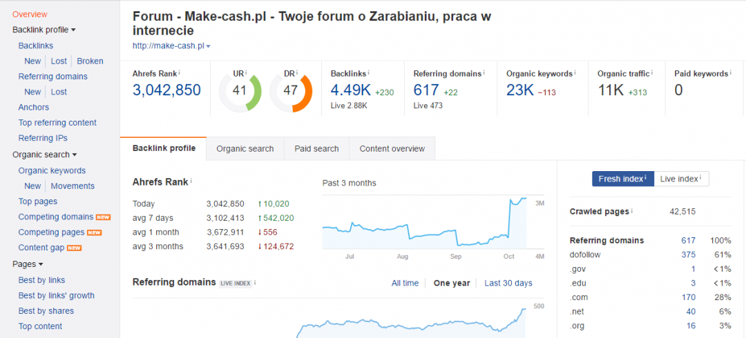 Jakich używacie stron do sprawdzania BL ? U mnie od tygodnia ahrefs.com wygląda jak zamrożony. Codziennie mam przyrost BL ,wszystko indeksowane gsa indexerem . Jednak nic nie przyrasta w ahrefs. Jak stanęło na kilku k BL tak stoi anie jeden na + lub na -