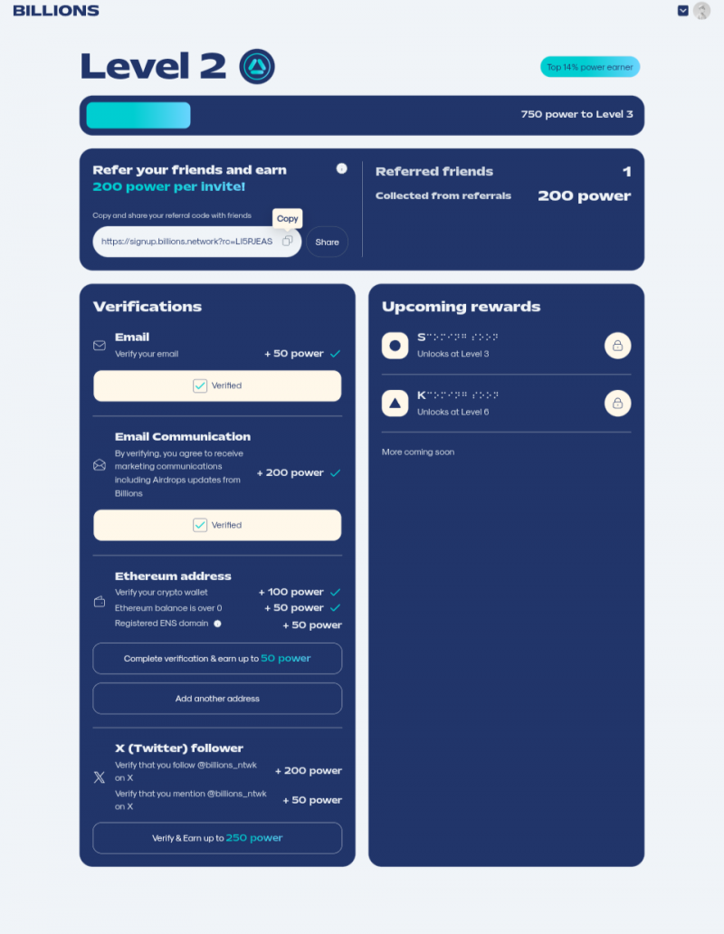 Kampania AirDrop sieci #Billions 550 Power For All User- Każdy kto Dołączy i Wykona zadania społecznościowe otrzyma 550 PKT Power Link (550PKT) 👇👇👇 ➡️Join:- https://signup.billions.network?rc=LI5PJEAS Czysty Link: https://signup.billions.network Dołącz poprzez Google > Kontynuuj, Ukończ zadania społecznościowe, Polecaj Aby zwiększać moc, Obserwuj rozwój 💯✅
