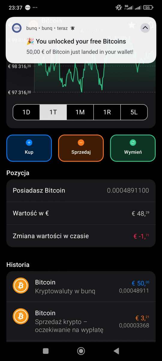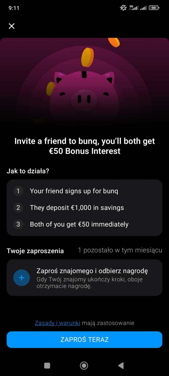 Szukasz alternatywy dla Revoluta? Sprawdź bunq! To holenderski neobank działający w całej Europie 🇪🇺 z pełną licencją bankową 🏦. Konto zakładasz w kilka minut przez apkę - selfie + dowód i gotowe 📱 🎁 Bunq - zdobądź 50€ bonusu od razu lub 100 szans na zwrot do 100€ za zakupy spożywcze.🎉 🏦 Bunq to alternatywa dla Zena czy Revolut. Szybkie przelewy Instant Euro Sępa, z darmową kartą wirtualną. CZYSTY LINK: https://www.bunq.com/pl-pl/ 👫 Obecnie jest fajny program poleceń: Opcja 1: 👉 Rejestrujesz się z czyjegoś polecenia 👉 Doładowujesz konto kwotą 1000€ 👉 Otrzymujesz bonus 50€ Opcja 1 została właśnie użyta, nagroda wpadła ekspresowo. Opcja 2: 👉 Rejestrujesz się z czyjegoś polecenia 👉 Kupujesz kryptowaluty na Bunq o wartości 250€ 👉 Otrzymujesz bonus 50€ Opcja 2 została właśnie użyta, nagroda wpadła ekspresowo. Opcja 3: 👉 Rejestrujesz się z czyjegoś polecenia 👉 Zamawiasz darmową wirtualną kartę 👉 Płacisz nią za zakupy spożywcze (najlepiej 100€) 👉 Otrzymujesz 100 zakręceń kołem, w którym możesz wygrać zwrot za zakupy do 100€. Bunq to bank cyfrowy (neobank), który stawia na pełną kontrolę użytkownika nad finansami poprzez aplikację mobilną. Rejestracja konta trwa około 5 minut - wystarczy smartfon, adres, email, numer telefonu i weryfikacja tożsamości przez wideoseksję. Użytkownicy mają do dyspozycji tzw. "skarbonki" (sub-konta) z własnym IBANem, co pomaga budżetować i porządkować wydatki. Bunq oferuje między innymi możliwość oszczędzania z oprocentowaniem (np. do około 2%), płatności kartą (w tym karty wirtualne), a także funkcje związane z kartami kredytowymi. Dla osób często podróżujących dostępny jest plan Elite, który oferuje eSIM, darmowy internet globalny, ubezpieczenie podróżne i pewne korzyści w roamingu. Bunq umożliwia też inwestowanie - dostępne są funkcje handlu akcjami oraz kryptowalutami. Konto bunq działa zarówno w wariancie osobistym, jak i biznesowym (dla freelancerów i małych firm), z różnymi planami cenowymi dopasowanymi do potrzeb. Obsługa klienta jest wielokanałowa: przez aplikację (czat), email, a także dostępna jest funkcja SOS oraz pomoc tłumaczona automatycznie na język użytkownika. Bezpieczeństwo środków jest chronione - bunq funkcjonuje w Holandii i stosuje się do regulacji takich jak Dutch Deposit Guarantee Scheme, co oznacza, że depozyty do pewnego limitu są gwarantowane. Celem bunq jest uproszczenie bankowości i jej dostosowanie do codziennych potrzeb: transparentne opłaty, brak zbędnego żargonu, intuicyjna obsługa aplikacji.