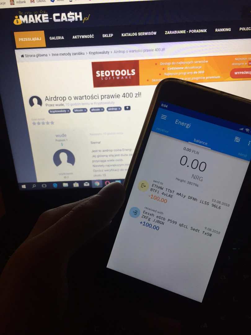 Siema! Jest to airdrop coina Energi - scentralizowana kryptowaluta Proof of Work z własnym algorytmem sieci. Jej główną siłą jest duża zaangażowana społeczność plus dość rentowy masternode - w obecnej chwili ROI jest na poziomie ~120% co w czasie bessy przyciąga wiele osób. Niestety największym minusem jest weryfikacja KYC. Oprócz weryfikacji do wykonania jest 9 zadań, które łącznie pozwalają na zdobycie 100 sztuk Energi, czyli według obecnego kursu jedna sztuka kosztuje około 1$ - https://coinpaprika.com/waluta/nrg-energi/ Jest to follow Energi na twiterze, retweet oraz like posta o dropie, napisanie tweeta o Energi, polubienie strony Energi na Facebooku, subskrypcja kanału na Youtube, dołączenie do Discorda Energi, Telegrama oraz polajkowanie, skomentowanie i udostępnienie posta z Facebooka o airdropie. Jak widzicie jest kilka zadań, które później są ręcznie weryfikowane - coiny rozdawane są dopiero po weryfikacji użytkowników, w momencie otrzymania coinów dostaniecie powiadomienie na mail. A i oczywiście potrzebujecie walleta do Energi, jest nim Coinomi na androida i iOS - https://www.energi.world/wallets/ Czysty link - https://earndrop.energi.world/register-eu.php Ref - http://earndrop.energi.world/homepage.php?ref=14597 (dzięki! :D) Airdrop nie jest scamem (przynajmniej do tej pory) - ja dostałem swoje coiny z pierwszej rundy i bez problemu je sprzedałem na cryptopii