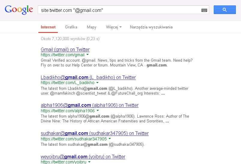 Co będziemy potrzebować: Przeglądarka FireFox Wtyczka do FireFox AutoPager https://addons.mozilla.org/pl/firefox/addon/autopager/ No to zaczynamy: Odpalamy Google.pl Wybieramy nasz target [strona z której chcemy pozyskać e-mail] ja użyję chyba każdemu dobrze znaną stronę twitter dla przykładu, w google wpisujemy: site:twitter.com "@gmail.com" oczywiście możemy zmieniać z gmail na o2, tlen itp zależy od potrzeb. Stron wyszukania pojawi nam się około 100 jak nie więcej. Teraz przyda się wtyczka AutoPager. Klikamy na wtyczkę Immediately Load > All i przewijamy w dół ciągle aż do końca ładowania Klilamy ctrl + a i ctrl + c Wchodzimy na stronę http://www.skymem.com/ W 1 klikamy ctrl + v Klikamy Start Extracking Emails Z 3 kopiujemy e-maile Jeśli będzie zainteresowanie napiszę poradnik jak obejść filtry i masowo wysyłać e-maile. Poradnik jest dla celów dydaktycznych. Nie ponoszę odpowiedzialności za wykorzystanie wiedzy zdobytej w poradniku. Zakaz kopiowania na inne fora By AmXuLiC. Ps. Nadal nie mogę dodawać prefiksu -.-