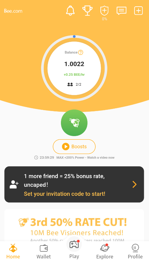 Bee Network to innowacyjna aplikacja do pasywnego wydobywania kryptowaluty Bee - bez kosztów, bez sprzętu, tylko smartfon i kilka kliknięć dziennie.