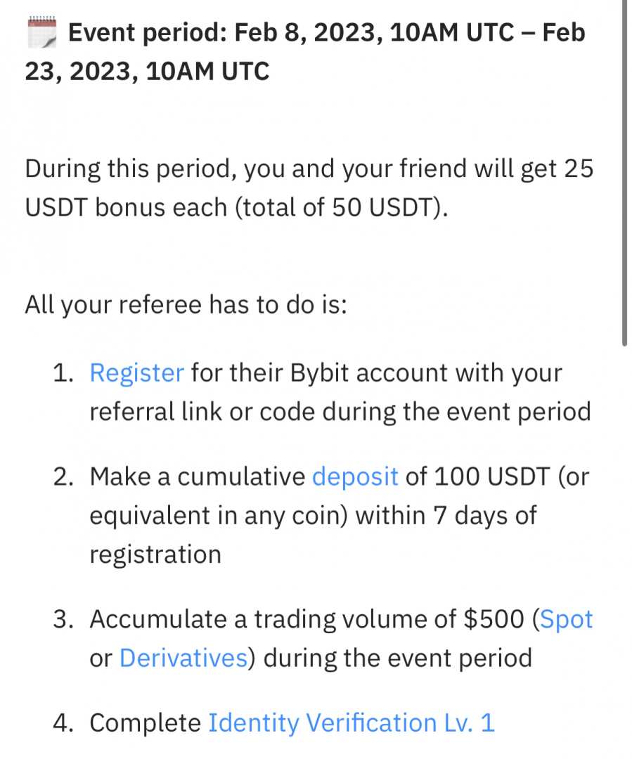 Giełda Bybit Bybit to wiodąca platforma do handlu kryptowalutowego, specjalizująca się w kontraktach futures. Założona w 2018 roku w Singapurze, szybko zdobyła uznanie w świecie krypto dzięki swojemu naciskowi na innowacyjność, bezpieczeństwo i wydajność. Użytkownicy Bybit mogą handlować na spot, kontraktami oraz kontraktami terminowymi Jeśli nie masz konta, to lecimy z tym 💪 Kroki do zrobienia: 1. Zakładasz konto z linku promocyjnego po poprawnym spełnieniu warunków otrzymasz 25$ od Bybit REF - https://partner.bybit.com/b/marek505 Czysty link https://www.bybit.com/en-US/ 2. Weryfikujesz konto do poziomu KYC LVL 1 3. Depozyt na min 100$ maksymalnie do 7 dni od rejestracji 4. Kręcisz Volumen tradingowy na 500$ (można kupić jakiś token i od razu sprzedać na spot) Giełda organizuje często promocje, warto to sprawdzić ck jest tam aktualnie jeden z przykładowych bonusów organizowanych z okazji walentynek w 2023 roku Bybit ma BONUS i promocje na walentynki Promocja trwa od 08.02- 23.02.2023 Do zgarnięcia po 25$ dla NOWYCH osób + 25 za każdą nową poleconą osobę. Jeśli masz domowników, możesz wyciągnąć z tego więcej, bo aż 75$+ Jeśli masz już konto po rejestrujesz swój udział w promocji na koncie i prostu polecasz dalej i zgarniasz po 25$ od osoby, a polecona osoba też dostaje 25$ WIN/WIN Po wypełnieniu zadania można przejść do polecania, aby włączyć promocję u siebie należy się do niej zgłosić na zalogowanym koncie Bybit Tutaj Artykuł dotyczący promocji - https://announcements.bybit.com/article/referral-valentine-s-share-the-love-to-earn-50-usdt-and-30-commissions--blte402bdbabba6b889/ Dziękuje jak korzystacie z refa 💪 dajcie znać kto robi tę promkę- 12 odpowiedzi