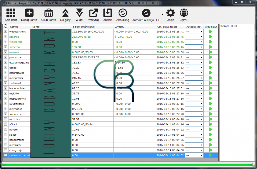 Witam! Zapraszam pokrewne dusze ebiznesowe do testowania aplikacji do szybkiego odczytu zarobionych środków z wielu programów. Jeśli zarabiamy w ten sam sposób to chyba nie muszę tłumaczyć więcej Bardzo zależy mi na odpowiedzi na jedno pytanie w ankiecie, która znajduje się tu https://cbr.ebizpro.pl/ lub tu https://www.facebook.com/eBizPROpl/posts/1025575967523172 Wracając do testów: każdemu kto posiada stronę/bazę czytelników mogę zaoferować PÓŁROCZNY dostęp do aplikacji w pełnej wersji (z możliwością zgłoszenia własnych programów) za recenzję na stronie LUB dostęp ROCZNY za recenzję i mailing do bazy czytelników. W razie pytań, jestem do dyspozycji.- 2 odpowiedzi