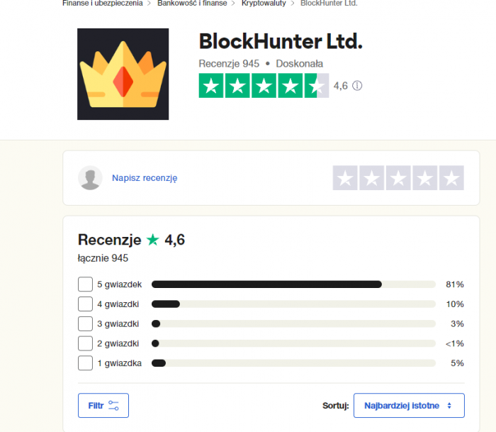 Tak jak w tytule Block hunter to darmowa koparka krypto w chmurze, wydaje się legit opinie ma dobre. Prosta rejestracja email, hasło nic nie tracicie warto spróbować. minimalna wypłata już od 5.88 euro czyli dosłownie jakieś dwa-trzy tygodnie nic nie robienia😅 Jak tylko przyjdzie pierwsza wypłata to dam tutaj info. można również inwestować by mieć wiekszy hash rate ale póki co się wstrzymam do pierwszej wypłaty. czysty link: https://www.blockhunter.eu/ ref: https://www.blockhunter.eu/?ref=o5ypETLD- 2 odpowiedzi