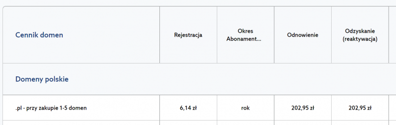 Hej, mam pytanie do osób, które trzymają większe portfolio domen i mają doświadczenie w wybieraniu korzystnych rejestratorów. Krótko o sytuacji: posiadam sporą liczbę domen (rozsianych u różnych rejestratorów) i powoli zbliża się moment, kiedy pierwsza większa paczka będzie wymagała przedłużenia. Chciałbym uniknąć przepłacania, dlatego rozglądam się za firmą, która oferuje możliwie najniższe i stabilne ceny za przedłużenia domen .pl. Z tego, co widzę różnice są naprawdę duże. Niektórzy rejestratorzy potrafią wołać ponad 200 zł za rok, inni schodzą w okolice 100 zł. Obecnie część domen mam na simply.com - odnowienie 50 zł netto/61,50 zł brutto - to już jest bardzo przyjemna cena ale może ktoś to przebije? Przy większej liczbie domen to spora różnica cenowa jeśli utrafi się najlepszą ofertę, więc chętnie poznam Wasze doświadczenia i polecenia: gdzie warto trzymać większą ilość domen .pl, czy istnieją jakieś programy lojalnościowe albo hurtowe pakiety, ewentualnie doadtkowe uwagi na co zwrócić uwagę oprócz samej ceny (np. obsługa, przenoszenie domen, panel). Generalnie szukam jak najtańszej firmy za jednostkową domenę - bo przecież nie ma znaczenia, gdzie jest zarejestrowana, to nie hosting, żeby strona działała szybciej czy wolniej, więc zwycięską firmą będzie zapewne ta z najniższą ceną. Z góry dzięki za wszystkie sugestie!