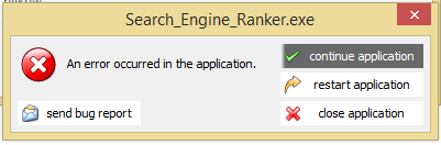 Bez przerwy wywala mi błąd zarówno w GSA SER jak i captcha breaker nie wiem co robić... An error occured in the application. W losowych momentach... czasem od razu po otworzeniu czasem jak trochę podziała. Proszę pomóżcie bo nie wiem co robić, nie mogę używać GSA od jakiegoś miesiąca... dzieje się to niezależnie od wersji.. NIe mam pojęcia co jest przyczyną.. Pomoże ktoś?