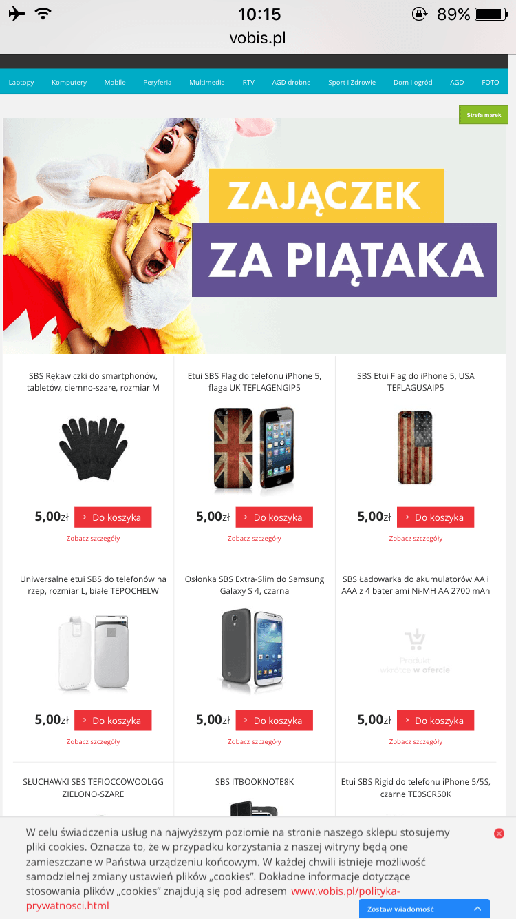 Tym razem w sklepie vobis mamy do wybory kilka produktów za 5zl. Ilośc ograniczona czasowo, w większości sa to etui i słuchawki. 1sztuka danego produktu na osobę. http://www.vobis.pl/zajaczek.html
