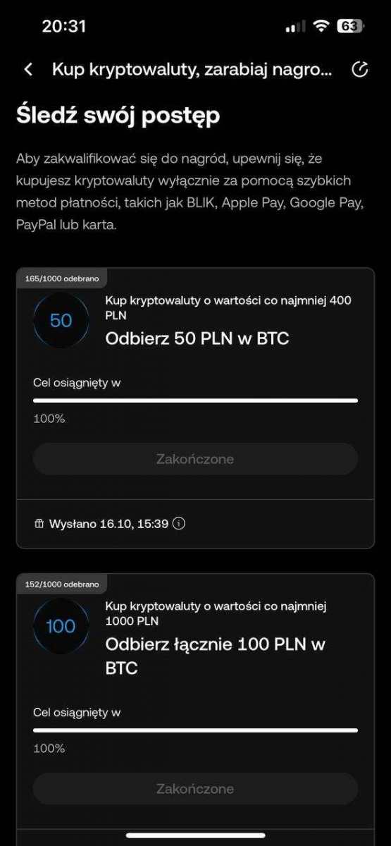 1. Oczekuję: Rejestracja z mojego linka, którego wyślę w wiadomości prywatnej, Kyc, zamówienie darmowej karty, 3 transakcje na 20 PLN (może być zakup psc) 2. W zamian oferuję: 200 PLN 3. Czas oddania refbacku: Od razu gdy otrzymam bonus 4. Kontakt: forum 5. Forma wypłaty refbacku: Revolut, krypto, blik 6. Data zakończenia promocji z której korzystasz: 11 Listopada 7. Gwarancja zwrotu kosztów w przypadku niepowodzenia: Tak 8. (opcjonalnie) Dodatkowy opis oferty: