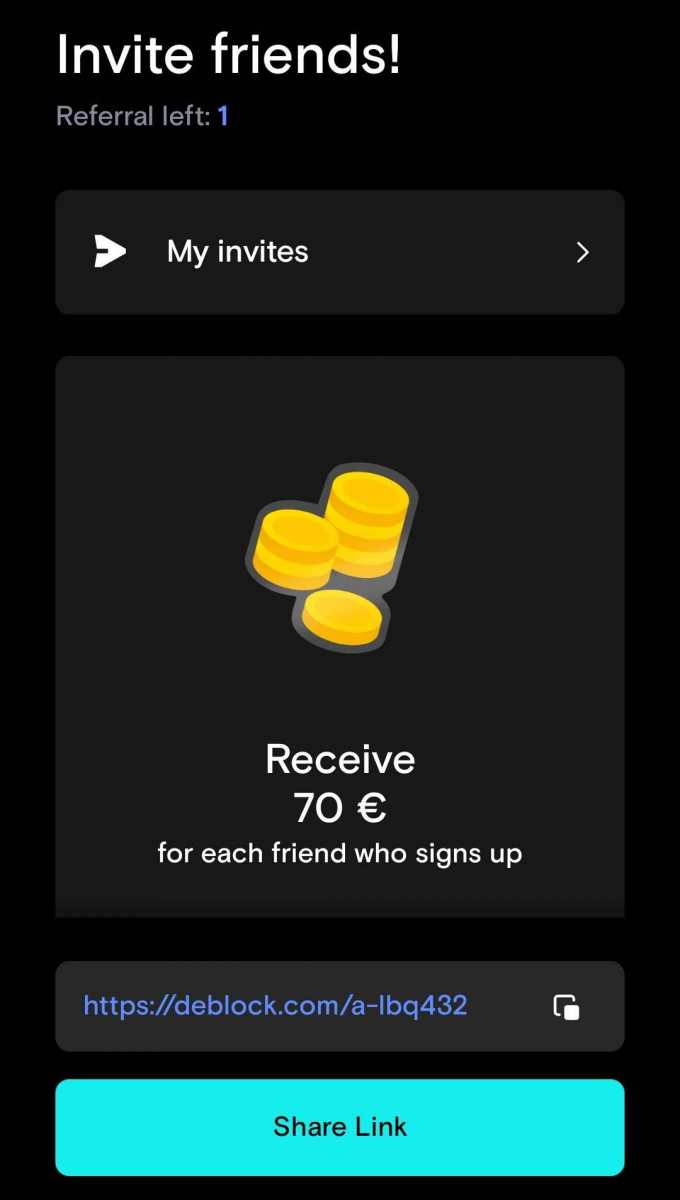[REFBACK] Deblock - bonus 20-500€ do podziału na pół.