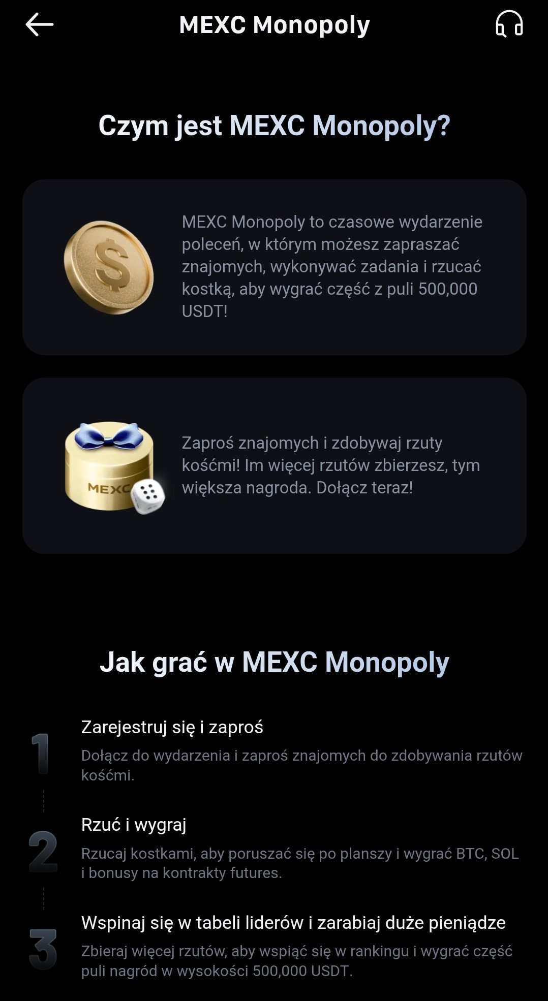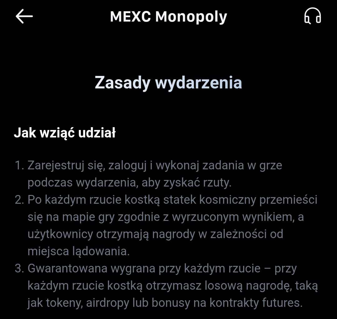 Giełda MEXC oferuje rzut kostką wygrana nawet do 1 BTC za trade obrót USD na dowolną kwotę oraz aktywny udział w wydarzeniu gwarantuje super benefity. REFLINK: https://s.mexc.com/referral/AceKYdLP CZYSTY LINK: https://www.mexc.com/ Jak wziąć udział: 1. W trakcie wydarzenia zarejestruj się, zaloguj i wykonuj zadania w grze, aby zdobywać rzuty kostką. 2. Po każdym rzucie Twoja rakieta przemieszcza się po planszy zgodnie z wynikiem rzutu, a Ty otrzymujesz nagrodę z pola, na którym wylądujesz. 3. Każdy rzut wygrywa-każdy rzut kostką daje losową nagrodę, taką jak tokeny, airdropy lub bonusy Futures. Okres wydarzenia: 19 września 2025, 18:00 - 31 września 2025, 17:59