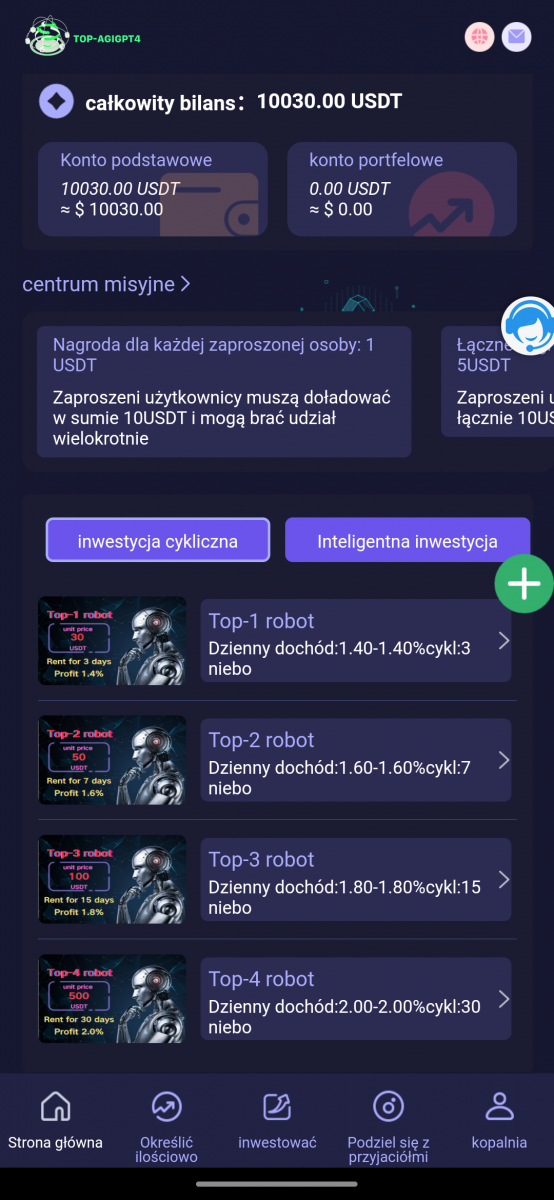Nowy robot Info z chata odnośnie zarabiania 🔵Top-AgiGPT4 Investment Co.Ltd🔵 🗓START-01.04.2024 Dzienny zysk: 2,5% - 5% Minimalny depozyt - 10 dolarów Minimalna wypłata - 2 $ Link do rejestracji: https://topagigpt4.xyz/index.html#/register/382517 Czysty https://topagigpt4.xyz/index.html#/register/ PREMIA ZA POLECENIE:4%-2% 🔺Depozyt: USDT/TRX/BNB/DOGE 🔺Wypłata: USDT trx20 Numer firmy TOPAGIGPT:12799496 【Top-AgiGPT4】 zapewnia krótkoterminowy wynajem robotów wszystkim użytkownikom i wszyscy użytkownicy mogą w nich uczestniczyć. Krótkoterminowe modele robotów wydane tym razem to: Top 1 Leasing w ramach programu robotów: Cena jednostkowa 30 USDT: Dzienny zysk 1,4% Wynajem robotów Top 2: cena jednostkowa 50 USDT: dzienny zysk 1,6% Top 3 wynajem robotów: cena jednostkowa 100USDT: dzienny zysk 1,8% Top 4 wynajem robotów: cena jednostkowa 500USDT: dzienny zysk 2,0% Top 5 wynajmu robotów: cena jednostkowa 1000USDT: dzienny zysk 2,3% Wynajem robotów Top 6: cena jednostkowa 3000USDT: dzienny zysk 2,5% Top 7 wynajmu robotów: cena jednostkowa 5000USDT: dzienny zysk 2,7% Top-8 wynajmu robotów: cena jednostkowa 10000USDT: dzienny zysk 3,0% Wynajem robotów Top 9: cena jednostkowa 20000USDT: dzienny zysk 3,5% Top 10 wynajmu robotów: cena jednostkowa 50 000 USDT; dzienny zysk 4,5% Znajomy, którego bezpośrednio zaprosisz, jest Twoim członkiem pierwszego poziomu. Jeśli naładuje i aktywuje inteligentnego robota, może otrzymać 1 USDT + 4% dochodu z doładowania. Znajomy zaproszony przez członka pierwszego poziomu jest Twoim członkiem drugiego poziomu. Członek drugiego poziomu ładuje i aktywuje inteligentnego robota i może otrzymać nagrodę w wysokości 2%. Dochód z depozytu- 14 odpowiedzi