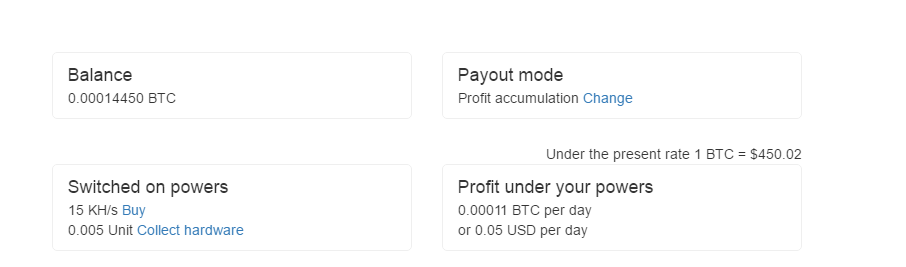 Ostatnio natknąłem się na bardzo interesującą stronę. Jest to wirtualna koparka BTC. Najlepsze jest to, że na start dostajemy 15KH/s, co daje nam zysk 0.00011 BTC na dzień. Środki są automatycznie wypłacane, gdy na naszym koncie zarobimy 0.005 BTC. Nawet osobom sceptycznie podchodzącym do tego typu stron, polecam sprawdzić-nic nie stracicie, a być może zgarniecie kilka satoshi. Ja pierwszego dnia dostałem trochę ponad 3000 satoshi, gdyż zarejestrowałem się pod koniec dnia. Wczoraj dostałem tyle ile powinienem. mój reflink: https://hashocean.com/signup/?rid=284926 czysty: https://hashocean.com/ polecam i życzę wysokich zarobków