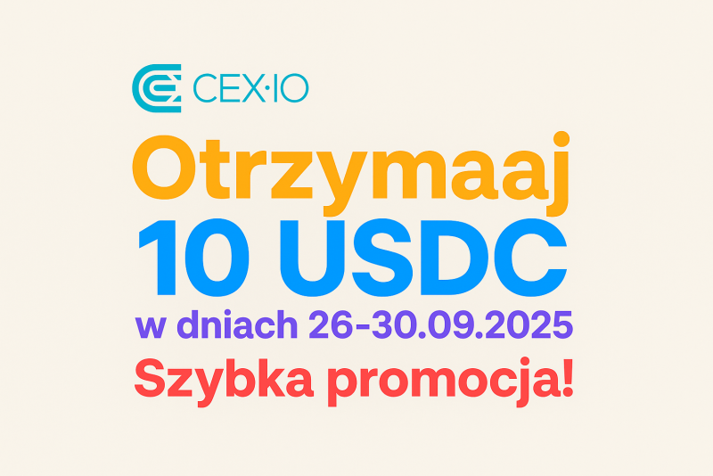 🎉🎁 CEX.IO prowadzi ograniczoną czasowo promocję błyskawiczną, w której możesz zarobić 10 USDC. 🎉🎁 👉 Szczegóły promocji 🗓️ Czas trwania: 26-30 września 2025 r. 🧮Całkowity limit: 1000 uczestników 💲Kwota nagrody: 10 USDC. ⌚Dystrybucja nagród: w ciągu 1 tygodnia od zakończenia promocji. 1️⃣ Utwórz nowe konto CEX.IO korzystając z mojego linku: https://cex.io/join?c=20&a=124187&o=3&s=sc&prid=referral-promo Czysty link, brak bonusu: https://cex.io/ 2️⃣ Dokonaj zakupu kryptowaluty o minimalnej wartości 50 USD lub wpłaty depozytu za pośrednictwem: a) Karta kredytowa/debetowa b) Apple Pay c) Google Pay d) Przelew bankowy ✔️ To wszystko. 🎁 Odbierz nagrodę. 🎉 Nagrody zostaną wysłane w ciągu 1 tygodnia od zakończenia promocji. Warto podkreślić, że w poprzedniej kampanii zostały rozdystrybuowane następnego dnia po zakonczeniu promocji.