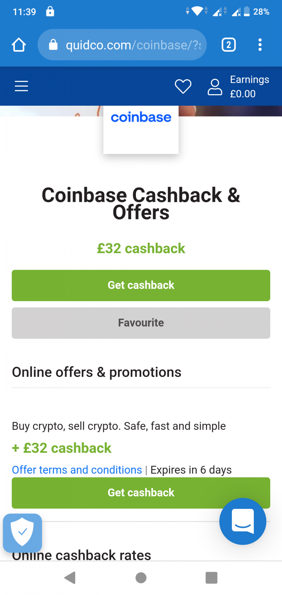 Sprawa wygląda następująco Qudico jako konkurent Top Cashback oferuje 32£ za założenie Coinbase poprzez ich strone (wszystko robimy w przeglądarce nie ściągamy żadnych aplikacji) Rejestrujemy sie w Qudico poprzez ten link: Czysty: https://www.quidco.com/ Ref: https://www.quidco.com/raf/10496461/ wystarczy sam email ! I wpisujemy Coinbase i rejestrujemy sie normalnie KYC I potwierdzenie adresu Mając już zweryfikowane konto na Coinbase kupujemy jakieś krypto za najmniejszą kwotę 2 € i sprzedajemy... Po kilku dniach na stronie Quidco pojawi sie nasz Cashback plus dodatkowo zarobisz za quizy na Coinbase