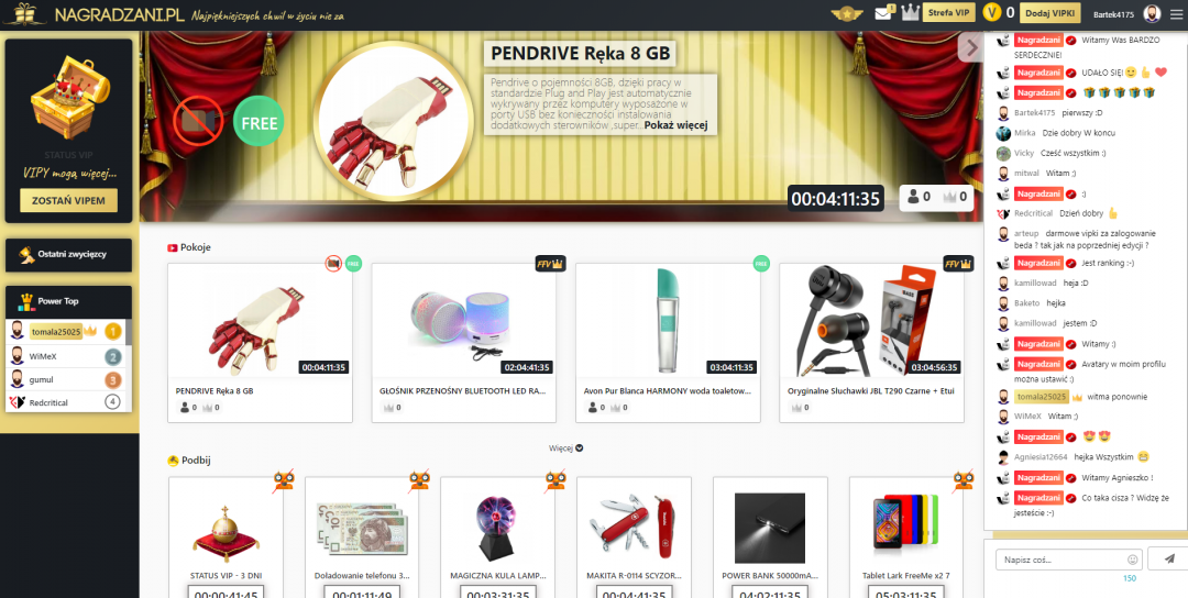 - darmowe nagrody