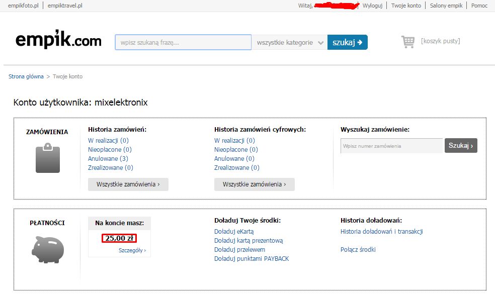 1. Nazwa przedmiotu: Konto empik.com z kwotą 25zł 2. Opis przedmiotu: Mam do sprzedania konto empik.com na którym znajduje się kwota 25zł. Ty wysyłasz pieniądze a ja wysyłam login i hasło, i od razu zmieniasz na własne i kupujesz co chcesz. 3. Źródło pozyskania: Własne 4. Zdjęcia: 5. Kontakt: PW lub GG: 52560415 6. Cena: 17zł 7. Sposób zapłaty: tylko PayPal