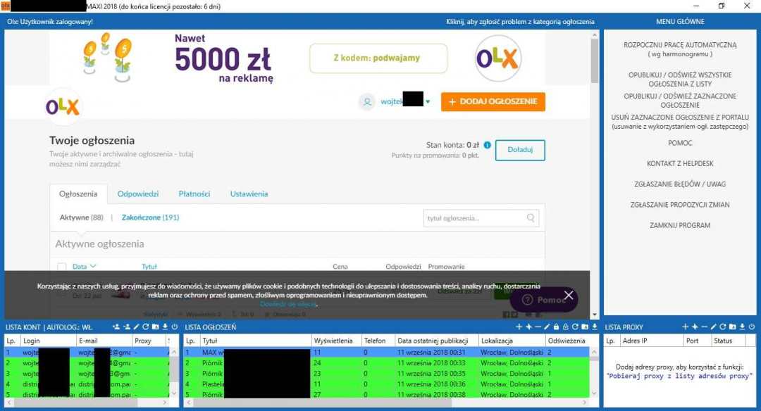 1. Nazwa przedmiotu: Generator ogłoszeń (erotyka) 2. Opis przedmiotu: Chciałbym przedstawić Generator Ogłoszeń. Jest to program, który generuje ogłoszenia oraz współpracuje z popularnymi portalami ogłoszeniowymi. Cel programu Oszczędzenie czasu na wymyślaniu treści do ogłoszeń. Szybkie dodanie ogłoszenia na portal ogłoszeniowy. Zwiększenie Twoich zarobków! Funkcje programu Generowanie ogłoszenia z własnym linkiem. Generowanie skryptu z gotowym ogłoszeniem pod portal ogłoszeniowy. Wystarczy jedno kliknięcie i ogłoszenie dodane! Ceny Jeżeli zainteresował Cię ten program i jesteś chętny do zakupu, to napisz do mnie na priv albo pod adres e-mail: wspolpraca89@gmail.com Jeśli nie jesteś pewny programu napisz, a dostaniesz 2 generowania dla testów! Póki co program generuje ogłoszenia tylko pod erotykę. PROMOCJA! Pierwsze 5 osób, które dokonają zakupu za min. 10 zł otrzymają darmowe 10 generowań! Promocja zakończona. 3. Źródło pozyskania: Program od zera napisany przeze mnie. 4. Zdjęcia: priv 5. Kontakt: Priv Adres e-mail: wspolpraca89@gmail.com 6. Cena: Cennik załączony do tematu. 7. Sposób zapłaty: PayPal/Przelew