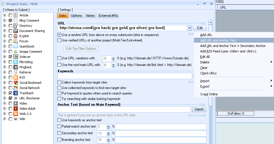 Cześć wszystkim specjalistom od pozycjonowania - ja do nich nie należę Od dwóch lat nie używałem GSA jednak po wszystkich banach konta postanowiłem otworzyć nową stronę, jednak nie pamiętam jak to dokładnie było z nowym projektem GSA dlatego mam pytanie jak to powinno być ustawione. 1. Zdjęcie 1a - zrobiłem projekt pod konkretnego hacka - link do podstrony, słowa kluczowe, artykuły wszystko pod tego konkretnego hacka. Moje pytanie czy teraz jak chce robić kolejnego hacka to muszę robić kolejny projekt i tak z każdym - na stronie będzie 100 hacków to i 100 projektów w GSA? 2. Zdjęcie 1b - zrobić projekt do strony głównej z ogólnymi słowami typu h@ack, cheat itp? artykuły ogólne do słów typu android games czy ios games. Do tego głównego projektu dodawać podstrony z konkretnym hackiem jak na zdjęciu 1c? czyli http://strona.com/gra-h@ack/#{gra h@ack| gra cheats| gra gold itp} i tylko jak dodam nowego hacka na stronie to do projektu wystarczy dodać taką konkretną linijkę ze słowami pod konkretnego hacka? Dzięki temu będzie jeden projekt z pozycjonowaną stroną główną i każdą podstrona z przypisanymi do niej konkretnymi słowami? Z tego co kojarzę to wtedy jeszcze z pomocą Ciamciaja korzystałem z opcji nr 2 ale wole spytać przed uruchomieniem projektu. Z góry dzięki za odpowiedź- 7 odpowiedzi