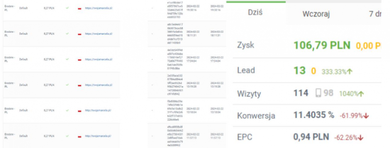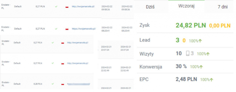 Afiliacja portali randkowych jest jedną z najpopularniejszych nisz. Sprawdza się idealnie na początku przygody i jest jedną z prostszych metod na pierwsze zarobki w internecie. Mocno trendującym ostatnio tematem stała się sztuczna inteligencja oraz tworzenie realistycznych awatarów. Usprawnienia na stronie w stylu głosówki wygenerowanej z kobiecego głosu do poprawy konwersji to już standard. Ale nie spotkałem się jeszcze z wykorzystaniem takowej postaci w afiliacji randek. Co może być w sumie ciekawym rozwiązaniem ze względu na możliwość wygenerowania nieograniczonej liczby zdjęć danej "kobiety" w różnych pozach oraz sytuacjach. To akurat jakimś problemem nie jest, ale dzięki działaniu na stworzonej postaci - nie musimy przejmować się żadnymi prawami autorskimi ani wyszukiwać profili na zagranicznych portalach. Postanowiłem przyjrzeć się trochę tematowi i wdrożyłem moją Influencerkę w afiliację. Poradnik w formie wideo: Na wstępie muszę zaznaczyć, że jestem członkiem grupy. Jej założycielem jest mentor @Czaq od którego ja wszystkiego się nauczyłem. Dzięki jego wiedzy byłem w stanie efektywnie wejść w świat afiliacji i praktycznie natychmiast zacząć zarabiać pieniądze. Ten wpis zrobiony jest w formie krótkiego „challenge’u” – ile będę w stanie zarobić w ciągu jednego czy dwóch dni. Zarobek poprzez marketing afiliacyjny wymaga jednak długotrwałego rozwoju kont oraz zaplecza reklamowego. To właśnie dzięki temu będziemy w stanie zbudować pasywny dochód i zarabiać konkretne pieniądze. Jak wygenerować Influencerke AI? Jest wiele różnych metod na wygenerowanie naszej AI Influencerki. Ja osobiście skorzystałem z płatnego narzędzia https://www.seduced.ai/ (reflink: SeducedAI ). Jest to portal przeznaczony do stworzenia postaci, a później użycia jej w różnych sytuacjach oraz kreacjach (również tych pikantnych). W tym poradniku jednak nie jest wymagane posiadanie tak obszernej galerii, a jedynie kilka spójnych fotek naszej Influencerki. Możecie stworzyć ją za pomocą darmowych narzędzi jak Seaart czy Leonardo. Jest w sieci tyle poradników, że wygenerowanie parunastu fotek jest tutaj najmniejszym problemem. Ja jednak zdecydowałem się na Seduced ze względu na to, że prowadze profil na oddzielnej platformie do sprzedaży „pikantnego” contentu. Coś w stylu OnlyFans. Moja influencerka (Maia) oprócz chwilowej promocji w marketingu afiliacyjnym jest również zagraniczną modelką która zarabia dla mnie kasę Tworzenie podstawowego zaplecza reklamowego i Landing Page Kiedy nasza postać jest gotowa musimy stworzyć jej konta w social mediach. Na wstępie jednak założę jej skrzynkę mailową, której użyje do rejestracji na Facebooku, Instragramie i Gadu-Gadu. Pododaje jakieś wstępne fotki, opisy, relacje, aby konta wyglądały jak najbardziej wiarygodnie. Z linkami afiliacyjnymi jest tak, że w social mediach są one blokowane. Oprócz profili będziemy potrzebować też osobną stronę internetową na którą przekierowani zostaną potencjalni zainteresowani. Dopiero z niej nasze leady przeniosą się do docelowej kampanii. Wymagany do tego będzie zakup hostingu oraz domeny. Osobiście korzystam z serwisu SEOHOST. Wybrałem go ze względu na korzystną cenę oraz bardzo pomocny support. Nie jestem profesjonalistą w tworzeniu stron, więc ich pomoc zdała mi się na wagę złota. Mój reflink: https://seohost.pl/ Zakupiłem hosting oraz domenę. Na potrzeby poradnika wybrałem nazwę: twojamarcela.pl. Pozwolę sobie ominąć proces podłączania domeny do serwera i instalowania certyfikatu SSL. Za pomocą darmowej wtyczki Elementor stworzyłem bardzo prostą stronę z której nasi odbiorcy będą kierowani na kampanię. (Strona głównie dostosowana jest pod ruch mobile i zdecydowanie lepiej wygląda na telefonie.) Głównym elementem, który wpłynie na to, że ktoś się zarejestruje będzie wykorzystanie paru afiliacyjnych trików. Przy użyciu narzędzia ElevenLabs stworzyłem głosówkę która zachęca do rejestracji. KLIKNIJ, ABY ODSŁUCHAĆ GŁOSÓWKI. Oraz takich dwóch pop-upów (wyskakujących okienek), które: Imitują otrzymanie wiadomości Informują Leada o rejestracji w portalu po kliknięciu w przycisk Wybór kampanii Jeśli chodzi o sieć afiliacyjną - zdecydowałem się na MyLead. Osobiście wybiorę program Erodate. Jest to kampania przeznaczona dla doświadczonych wydawców z potwierdzoną jakością ruchu. Typ: CPL (Cost Per Lead) oznacza, że prowizje otrzymujemy za rejestrację w portalu. Kampania pozwala zarobić ponad 8 PLN od jednej osoby która założy konto z naszego reflinku. Podłączam pod przyciski link afiliacyjny i zabieram się za promocję. Promowanie Kiedy nasze (bardzo podstawowe) zaplecze reklamowe jest gotowe, a link afiliacyjny podpięty na stronie – możemy zacząć promować. Zacznę od napisania kilkudziesięciu ogłoszeń na portalach w kategorii szukania osób do towarzystwa. Tematyczne portale bardzo łatwo znaleźć. Warto skupić się rownież na ogólnych stronach z ogłoszeniami które posiadają „towarzyską” kategorię. Ogłoszenia opierać będę na luźnej, niezobowiązującej relacji na które jest najwięcej chętnych. W niektórych serwisach trzeba tworzyć konta oraz potwierdzać maila. Większość czasu jest to kopiuj + wklej. Po napisaniu ogłoszeń wrócę na moje wcześniej stworzone social media. Wrzucę posty i relacje zachęcające do kontaktu w wiadomości prywatnej. (Na Instagramie jest o tyle łatwiej, że w relacji możemy umieścić link bezpośrednio do naszej wcześniej stworzonej strony) Na Facebooku wchodzę na tematyczne grupy i dodaje posty, aby dostać więcej zaproszeń do znajomych (już ich trochę dostałem poprzez wcześniejszy wstępny rozwój konta). Sam dodaje osoby, które lajkują lub komentują posty w tematycznych grupach. Bardzo łatwo je znaleźć, gdyż jest to popularny sposób na 