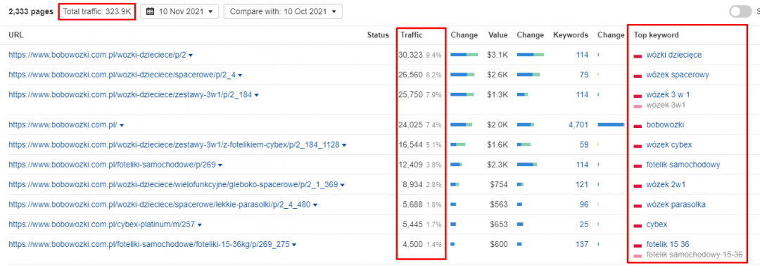 Po co skupiać się na konkurencji? Ponieważ Twoja konkurencja wykonała już całą ciężką pracę za Ciebie. A czym jest analiza słów kluczowych konkurencji (competitive keyword research analysis) i jak może Ci pomóc? CKRA to proces badania najbardziej wartościowych słów kluczowych na poziomie strony Twojego konkurenta, w celu określenia, na które keywordy powinieneś zwrócić uwagę. Skupiając się na swojej konkurencji, możesz uzbroić się w ogrom słów kluczowych i pomysłów na treści, które gwarantują wygenerowanie ruchu na stronie. Oto krótki przegląd tego procesu: Zrób listę swoich głównych i drugorzędnych konkurentów Wprowadź ich adresy URL do Site Explorer w Ahrefs Zidentyfikuj najlepsze słowo kluczowe, w które celuje każda strona Stwórz dokument dla głównej listy słów kluczowych Uporządkuj słowa kluczowe według hub, spoke i section (wytłumaczone w dalszej części artykułu) Celuj w najmniej trudne keywordy i powoli przechodź na cięższe A oto serwisy, których będziesz potrzebował, aby to osiągnąć: Ahrefs Google Sheets Zaczynajmy! Jak wykonać analizę słów kluczowych konkurencji w 30 minut lub krócej Zrób listę głównych konkurentów To, kogo wybierzesz jako swojego konkurenta, zadecyduje o sukcesie Twojej strategii badania słów kluczowych. Jeśli wybierzesz zbyt słabą konkurencję, możesz nie zobaczyć żadnych wartościowych treści. Z drugiej strony, wybierając konkurenta, który obsługuje ogromną część rynku, na którym nie prowadzisz swoje działania, znacznie trudniej będzie znaleźć odpowiednie słowa kluczowe, które wygenerują targetowany ruch. W tym poradniku będziemy używać zestawu narzędzi SEO Ahrefs. Inne narzędzia SEO typu "wszystko w jednym", takie jak SEMRush również powinny się sprawdzić. Jeśli poszukujesz serwisów, które pomogą Ci w realizacji założeń z tego poradnika, sprawdź SeoTools! Wprowadź adres strony konkurenta do Site Explorer w Ahrefs Wprowadź jeden z URLi do Site Explorer: Przejdź do raportu z zakładki Top Pages (lewa strona Site Explorer’a) W tym miejscu zostanie Ci przedstawiona lista najlepiej działających stron w witrynie Twojego konkurenta. Są to, w skrócie, strony, które generują najwięcej ruchu. Oto kilka ważnych rzeczy, na które warto zwrócić uwagę: Ruch całkowity: Jest to szacowany całkowity ruch, jaki ta witryna uzyskuje miesięcznie z ruchu organicznego. Jest on obliczany poprzez sprawdzenie pozycji każdej podstrony w rankingu wyszukiwarki na wszystkie słowa kluczowe. Najczęściej jest on niedoszacowany, a rzeczywista liczba jest 3-4 razy większa, Ruch na stronie: Podobnie jak powyżej, jest to szacowany ruch generowany przez daną stronę z wyszukiwarek w każdym miesiącu, Top Keyword: Jest to słowo kluczowe, które generuje największy ruch na stronie lub podstronie. Uwaga: najlepsze słowo kluczowe NIE jest koniecznie najlepszym słowem kluczowym, w które powinieneś celować. To po prostu słowo kluczowe, które generuje największy ruch na danej stronie. Na sam koniec kliknij w menu rozwijane i otwórz raport Organic Keywords dla każdej podstrony w nowej karcie. Otrzymasz listę wszystkich słów kluczowych, na których dana podstrona zbiera ruch: Zidentyfikuj najlepsze słowa kluczowe, na których chciałbyś się wybić Twoim celem jest wybranie najlepszego słowa kluczowego, na które chciałbyś się wypozycjonować. To, co decyduje o tym, czy dane słowo kluczowe jest "najlepsze" dla Twojego biznesu, zależy od Ciebie. Ja jednak zadaję sobie następujące pytania: Czy mój rynek docelowy jest zainteresowany dowiedzeniem się więcej na ten temat? Czy to słowo kluczowe ma wartość komercyjną? Czy moi konkurenci aktywnie starają się na nie pozycjonować? Czy możemy dopasować się do intencji użytkownika stojących za tym wyszukiwaniem? Jeśli możesz odpowiedzieć "tak" na co najmniej 3 z tych pytań, to prawdopodobnie jest to dobre słowo kluczowe, które warto targetować. Oto przykład: Jednym z naszych celów w tym roku jest zbudowanie programu partnerskiego, który łączy firmy z dostawcami usług marketingowych. Podczas badania Ahrefs.com i Quicksprout.com odkryliśmy, że słowa kluczowe takie jak "jak zdobyć klientów seo" i "pytania do firmy SEO" kierują pokaźne ilości ruchu na te strony każdego miesiąca. Czy mój rynek docelowy jest zainteresowany dowiedzeniem się więcej na ten temat? Tak! Dostawcy usług SEO zawsze szukają sprytnych sposobów na zdobycie większej liczby klientów. Firmy muszą mieć również przygotowaną listę pytań do SEOwców, aby zrozumieć pełen zakres tego, w co się angażują. Czy te słowa kluczowe mają wartość komercyjną? Tak. Pisząc na te tematy, moglibyśmy kwalifikować potencjalnych klientów, którzy przychodzą z wyszukiwarek i zbierać o nich informacje. Następnie, moglibyśmy dopasować je na podstawie zainteresowania i pobierać opłatę. Czy moi konkurenci aktywnie starają się pozycjonować na ten keyword? Tak. Zarówno Ahrefs jak i Quicksprout plasują się bardzo dobrze na tych słowach kluczowych. Czy możemy dopasować się do intencji użytkownika stojących za tym wyszukiwaniem? Tak. Jako dostawca usług marketingowych, mamy bezpośrednie doświadczenie w pozyskiwaniu klientów SEO dla siebie. Jak widzisz, te dwa słowa kluczowe przeszły nasz test bezbłędnie, więc dodaliśmy je do naszej listy i zaczęliśmy się na nie pozycjonować. Powtórz te kroki dla pozostałych topowych stron Twojego konkurenta Gdy Twoje słowa kluczowe przejdą test, dodaj je do dokumentu z główną listą słów kluczowych. Następnie powtórz ten proces. Kontynuuj przechodzenie przez strony konkurentów jedna po drugiej, aż będziesz miał co najmniej 50 słów kluczowych, które warto wziąć na celownik. Utwórz podstrony dla tych słów kluczowych, a następnie znajdź 50 więcej słów kluczowych. Rób tak w kółko. Następnie należy posortow