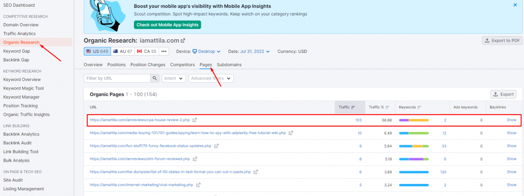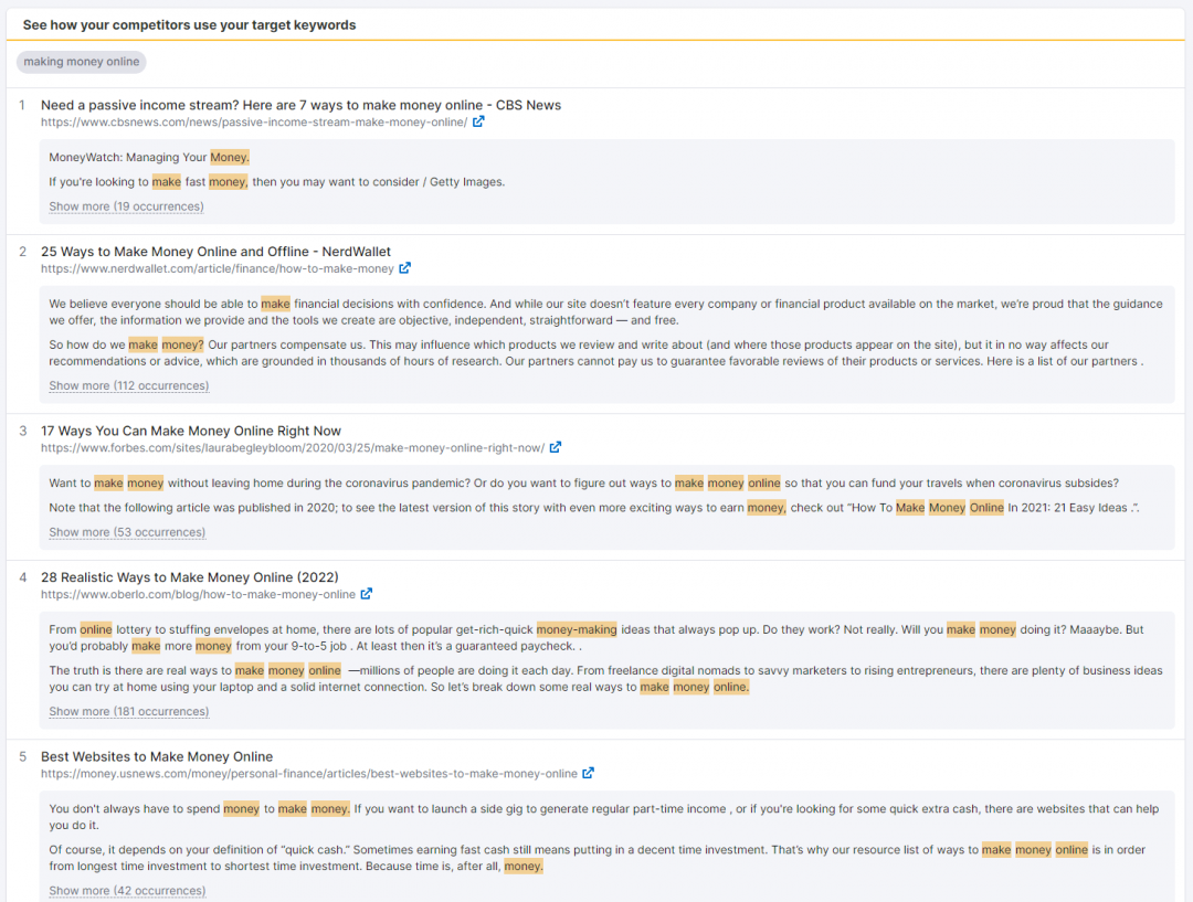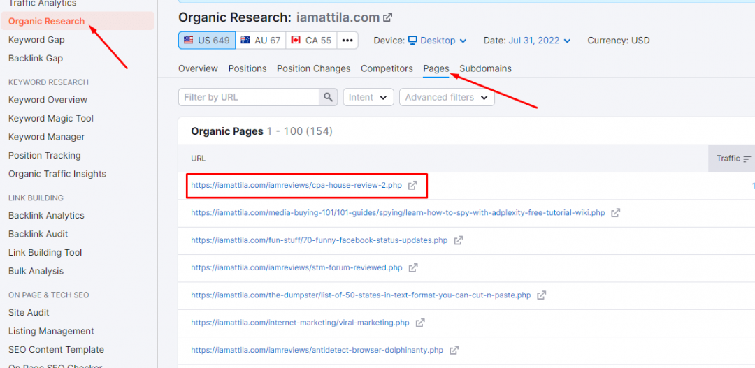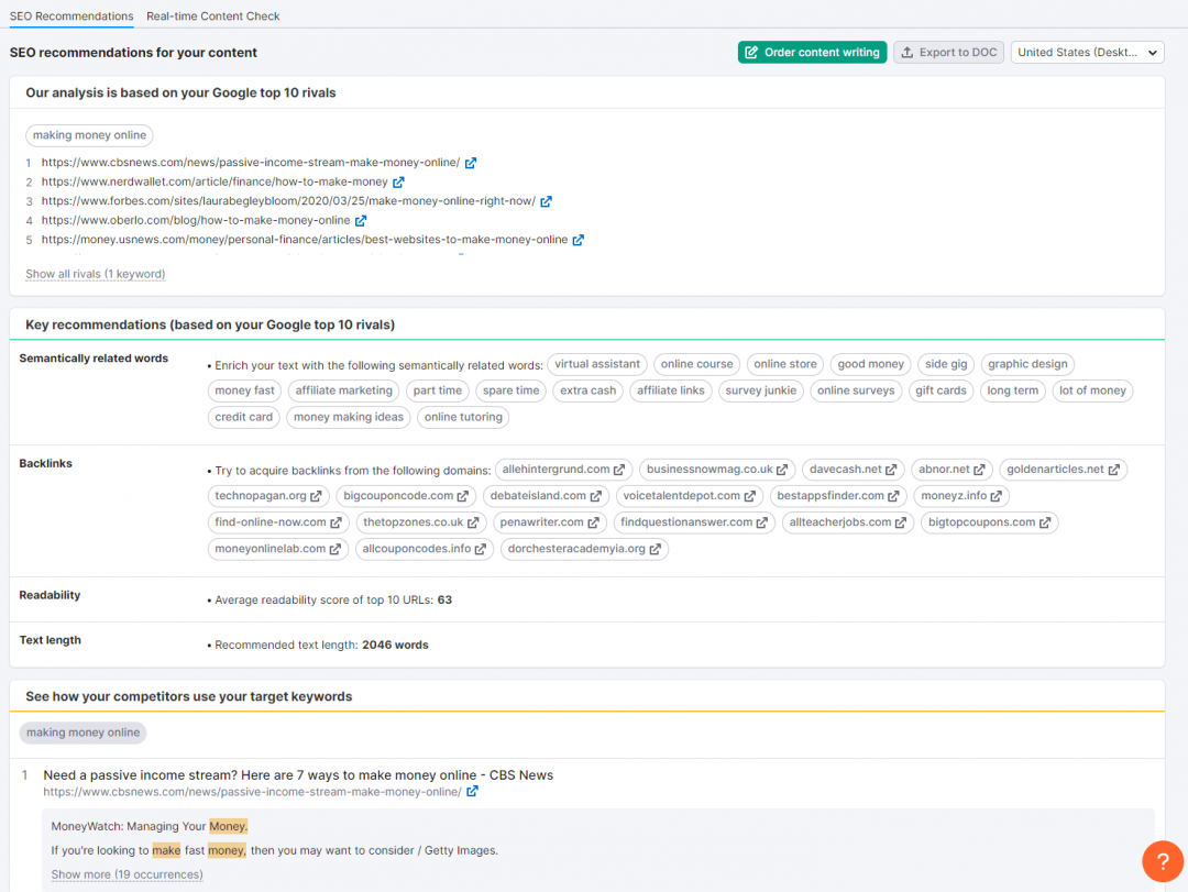 Istnieje kilka sposobów, by wykorzystać SEMRush, aby zwiększyć swój ruch na stronie WWW i wspomóc swoją pracę w zakresie SEO i content marketingu. Platforma ta jest pełna narzędzi i funkcji, które pomogą Ci zoptymalizować Twoją ogólną strategię marketingową.Nowi użytkownicy mogą czuć się przytłoczeni ich ilością i może być im ciężko określić od czego zacząć w Semrush. W związku z tym, oto 9 możliwych sposobów, jak możesz użyć SEMRush, aby napędzić ruch do swojej witryny i poprawić wyniki w SERPach. INFORMACJA: Jeśli nie stać Cię na subskrypcję premium w SEMRush, sprawdź forumowe SeoTools, na które na pewno będzie Cię stać 1. Wyszukiwanie słów kluczowych long-tail (z dużym potencjałem ruchu) Oto sekret sukcesu w SEO: badanie słów kluczowych. Znalezienie najbardziej dochodowych słów kluczowych dla Twojej witryny jest podstawą solidnej strategii SEO. Jeśli działasz w niszy, w której panuje silna konkurencja, trudno będzie Ci zdominować wyniki wyszukiwania, jeśli Twój content marketing jest zbudowany wokół słów kluczowych o dużej ilości wyszukań i wysokiej konkurencji. Jeśli dopiero zaczynasz, to strona z wyższym autorytetem prawie zawsze będzie cię prześcigać w SERPach. W związku z tym, zawsze powinieneś zacząć od słów kluczowych o niskiej konkurencji i dużym potencjale ruchu. To moment, w którym Keyword Magic Tool z SEMRush może być niezwykle przydatny. Keyword Magic Tool to łatwe w użyciu narzędzie do badania słów kluczowych, które zapewni Ci wszystkie keywordy, których potrzebujesz do zbudowania skutecznej kampanii SEO lub PPC. Dzięki temu narzędziu możesz wygenerować setki słów kluczowych long-tail dla swojego głównego słowa kluczowego (lub kilku słów kluczowych). Aby skorzystać z tego narzędzia, zaloguj się do Semrush i przejdź do: Keyword Research -> Keyword Magic Tool Wpisz swoje ogólne słowo kluczowe (lub słowa kluczowe) i naciśnij "Search". Z Twojego słowa kluczowego, narzędzie wygeneruje listę powiązanych słów kluczowych. Dla każdego z nich, narzędzie pokaże Ci kluczowe metryki, takie jak ilość wyszukań, trudność słowa kluczowego (KD), CPC i konkurencja. Ale ponieważ szukamy long-taili z niskim wolumenem wyszukiwania, ale wysokim potencjałem ruchu, będziemy musieli zawęzić naszą listę słów kluczowych do wybranych kilku. Po lewej stronie w wynikach, znajdziesz grupy słów kluczowych dla swojego głównego keyworda. Grupy te mogą pomóc Ci znaleźć kombinacje long-tail z dokładnie tymi samymi słowami kluczowymi, których szukają ludzie. Możesz wybrać dowolną z tych grup, aby znaleźć long-taile w każdej grupie. Te słowa kluczowe będą miały niski-średni wolumen wyszukiwania, ale mniejszą konkurencję, co oznacza, że łatwiej jest wyprzedzić konkurentów. Po zidentyfikowaniu słów kluczowych, które chcesz włączyć do swojej kampanii, możesz dodać te słowa kluczowe bezpośrednio do Keyword Analyzer, aby uzyskać bardziej szczegółowe informacje na ich temat. 2. Identyfikacja możliwości w zakresie treści poprzez znalezienie najlepiej działających podstron Twojego konkurenta Analiza konkurencji jest jednym z najważniejszych elementów udanej kampanii marketingowej. Uzbrojony w doświadczenia konkurencji, możesz poprawić i rozwinąć własną strategię marketingową. Semrush ma mnóstwo narzędzi i funkcji, które pozwalają uzyskać wgląd w strony internetowe konkurencji. Najpierw zidentyfikujmy najlepsze podstrony Twojego konkurenta - są to strony, które generują największy ruch. Wybierz Domain Overview z menu rozwijanego i wprowadź domenę swojego konkurenta. Na stronie z wynikami kliknij Organic Research, a następnie przejdź do Pages. Tutaj znajdziesz najlepsze podstrony Twojego konkurenta oraz procent ruchu organicznego, jaki generuje każda z nich. Oto najlepiej działająca strona IAmAttila - generuje ona największy procent ruchu organicznego na jego blogu: Po znalezieniu strony, którą chcesz targetować, możesz kliknąć na numer słowa kluczowego, aby odsłonić całkowitą liczbę słów kluczowych, dla których strona zajmuje miejsce w top 100 wyników wyszukiwania Google. Znajdowanie najlepszych podstron konkurencji może być bardzo przydatnym ćwiczeniem w tworzeniu własnej strategii contentowej. Możesz wziąć pomysły na słowa kluczowe, które już zadziałały u Twoich konkurentów i zacząć konstruować swoje treści w znacznie lepszy sposób niż oni. W ten sposób przyciągniesz również więcej backlinków niż konkurencja, co ostatecznie pozwoli Ci wyprzedzić ją w wynikach wyszukiwania. 3. Optymalizacja istniejących treści SEO Content Template jest niezbyt często wykorzystywanym narzędziem w Semrush. To narzędzie może pomóc w tworzeniu treści przyjaznych SEO, ukazując arkusz zaleceń na podstawie docelowych słów kluczowych. Te zalecenia są oparte na wglądzie w 10 najlepszych stron Google dla Twoich słów kluczowych. Aby zacząć, wybierz SEO Content Template z lewego menu nawigacyjnego. Wybierz ustawienia docelowe (kraj, język, typ urządzenia), wpisz słowo/słowa kluczowe, na których chcesz się wybić i kliknij przycisk Create SEO Template. Semrush wygeneruje wtedy szablon zaleceń SEO dla Twoich treści. Obejmują one sugestie dotyczące: Semantically related words - słowa lub frazy, które są ze sobą powiązane. Backlinks -domeny, które możesz targetować do pozyskania backlinków Readability- łatwość, z jaką czytelnik może zrozumieć Twoją treść. Text length - idealna liczba słów w treści. Skorzystaj z tych sugestii, aby ułożyć swoją treść w taki sposób, by wyprzedzić swoich rywali z pierwszej dziesiątki w SERPach. Użyj semantycznie powiązanych słów kluczowych, aby zapewnić sobie więcej kontekstu dla danego tematu, dzięki czemu mogą one wyżej pojawiać się w wynikach wyszukiwania. Sugerowana lista backlinków to domeny,