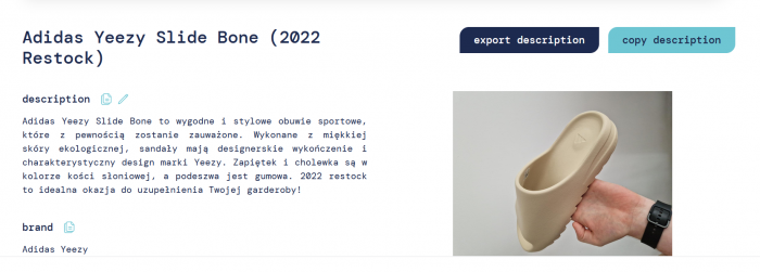 Cześć, nieco prywaty bo dawno tutaj nie zaglądałem ale mam coś bardzo ciekawego dla dropshipperów. Mianowicie https://descrb.com/ słowem wstępu video: Descrb na podstawie analizy zdjęcia jest w stanie rozpoznać produkt i wypisać jego najwazniejsze funkcjonalności + dobry opis z słowami kluczowymi. Uprzedzając pytania, nie to nie jest kolejny reskin GPT. GPT nie ogarnia marek, jest to własny podkręcony przetrenowany model z optyką na ecommerce. Jeżeli chodzi o funkcjonalności są to: (tutaj coop z chatem gpt) 🖼 Generuj opisy produktów na podstawie zdjęć w sekundach. (Wspomniane wyżej) 🌍 Wielojęzyczne opisy dostosowane do Twojego rynku. (Z racji tego że core zespołu jest z Polski, opisy pod PL są dostosowane stosunkowo dobrze, najlepiej działa pod angielski ale co do polszczyzny to nie ma wstydu). 🧠 Inteligentna integracja słów kluczowych dla lepszej widoczności SEO. (Dodajesz słowo kluczowe "pizza" descrb dodaje jest do opisu w dobrym kontekście). 📜 Odkrywaj historie marek i produktów, by bardziej angażować swoich klientów. (Np. Historia brandu adidas, hugo boss) 🔍 Zrozum technologie i materiały, z których wykonane są produkty. (Np. Guma jako materiał, uultraboost jako technologia itd) Dodatkowo, mamy api, potencjalne integracje z PIM systemami, dla każdego coś fajnego. 50 opisów za darmo, jednak po wyczerpaniu limitu puście mi sygnał po starej znajomości coś załatwie PS. Załączam opis