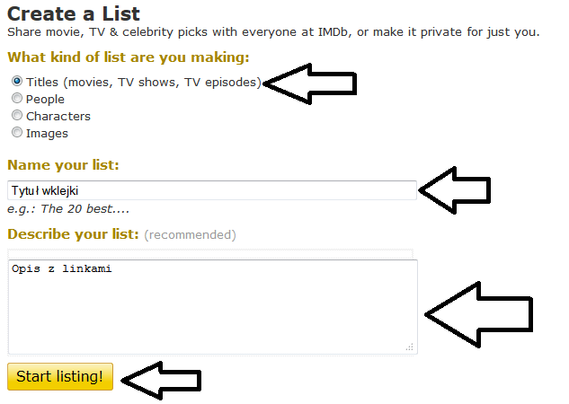 Witam ponownie W niniejszym krótkim poradniku przedstawię Wam kolejną znalezioną samodzielnie metodę promowania swojego bloga czy też innych stron do PPA. Zapewne wiele osób zna serwis IMDb.com. - serwis zawierający artykuły odnośnie filmów, seriali, aktorów itp. Jak wykorzystać ten serwis do promocji? 1. Wszystkie czynności wykonujemy przez TOR Browser. 2. Rejestrujemy się w serwisie (najeżdżamy na Login i wybieramy z listy register). Można wykorzystać maila http://10minutemail.com 3. Najeżdżamy na swoje "imię i nazwisko" w prawym górnym rogu strony i klikamy na Your Lists. 4. Następnie z prawej strony klikamy na Create new list i uzupełniamy pola wg poniższego schematu. Zatwierdzamy przyciskiem Start listing. 5. Ostatnim krokiem jest kliknięcie przycisku Save, który powoduje upublicznienie naszej wklejki. Życzę miłego spamowania (z umiarem)