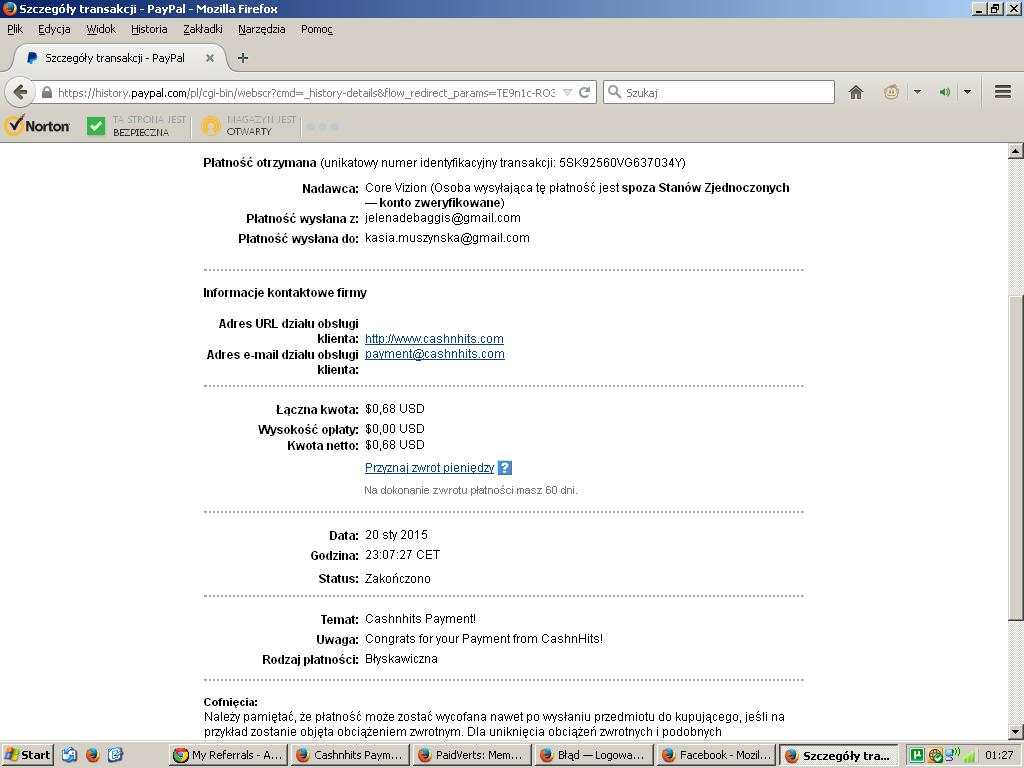 http://www.cashnhits.com/index.php?ref=babooshka76 http://www.cashnhits.com Fajny program łączący autosurf z wieloma innymi możliwościami zarobku, m.in. klikaniem w reklamy, oglądaniem czy komentowaniem wideoklipów, lajkowaniem na FB i in. Błyskawiczny zarobek już od pierwszego dnia - w pierwszej dobie "wypracowałam" bez wysiłku i poleconych 12 centów. Minimum wypłaty 0.60$. Pierwsza wyplata - 68 centow po 5 dniach uzytkowania