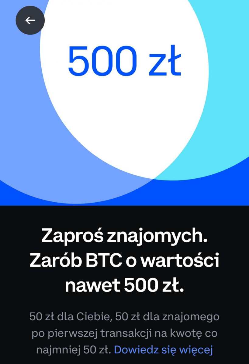 1. Oczekuję: Rejestracji z mojego reflinku: https://coinbase.com/join/7YB96LF?src=android-link oraz wykonanie transakcji na co najmniej 55zł 2. W zamian oferuję: 50 zł od Coinbase oraz 20 zł odemnie w podziękowaniu za rejestrację 3. Czas oddania refbacku: Refbacki wysyłam maksymalnie w godzinę po otrzymaniu nagrody. 4. Kontakt: Forum lub telegram @Bolsonz 5. Forma wypłaty refbacku: Blik / Revolut / Krypto 6. Data zakończenia promocji z której korzystasz: do odwołania 7. Gwarancja zwrotu kosztów w przypadku niepowodzenia: BRAK GWARANCJI
