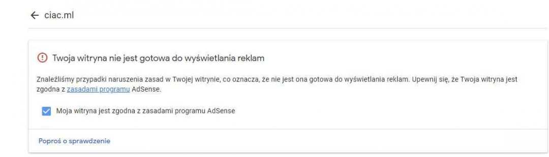 Hej, już kilka razy próbowałem zatwierdzić stronę do programu adsense, ale się nie udało wydaje mi się, że treść jest wystarczająca... otrzymuję zawsze taka wiadomość. [załącznik] LINK do strony: https://ciac.ml/ W innych stronach zazwyczaj pokazuje, że za mało treści, tutaj tylko, że "narusza regulamin". [Mam już kilka stron zatwierdzonych, z reklamami adsense] Co teraz, zrobić? Co usunąć, a co dodać? Wyczytałem na tym forum, że ktoś proponował usunąć dotychczasową treść, i dodać jakieś artykuły, ale przecież mam kilka, więc co jest nie tak? Dzięki za pomoc i poświęcony czas. ------------------------------------------------------------------ Jakie są najlepsze alternatywy dla andense, ale tylko z przyjaznymi reklamami i wysokim cpc [podobne do adsense], przynajmniej 0,15gr / 0,3$. I najlepiej niskim progiem do wypłaty. [dla małych stron].