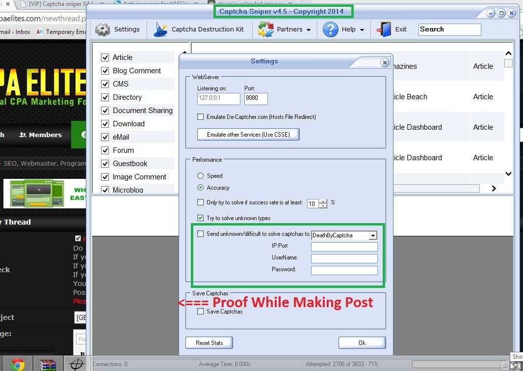 Witam, mam pytanie odnośnie captchy snipera, ktoś się spotkał z takim problemem? 2% skuteczności (specjalnie dla testów sprawdziłem każdą opcje do submitu, która jest dostępna w GSA)