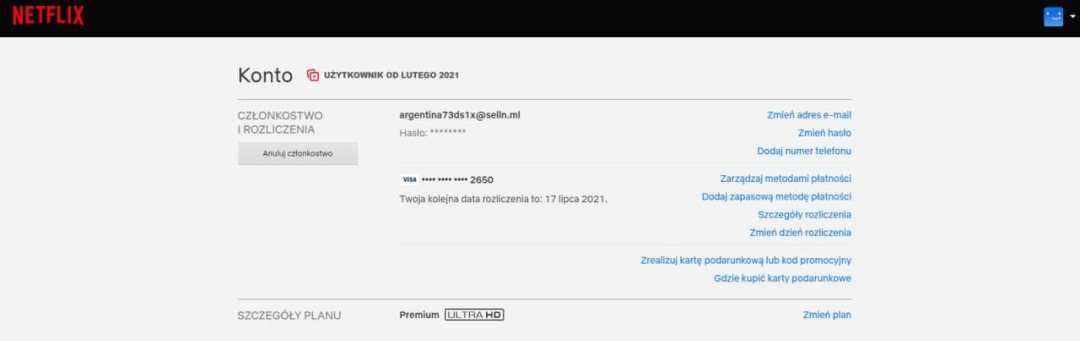 1. Nazwa przedmiotu: Konta Netflix z aktywną subskrypcją ULTRAHD (4 urządzenia) z możliwością odnowienia i dłuższej współpracy 2. Opis przedmiotu: Mam do zaoferowania Konta Netflix , które są OPŁACANE i odnawiane co miesiąc Konta są w pełni po polsku (pełna polska biblioteka oraz język). Po zakupie otrzymujesz login;hasło do konta, na którym jest aktywna subskrypcja Konta są prywatne, więc można zmienić hasło itp. Możliwość zakupu na dłużej niż miesiąc Wystarczy się tylko zalogować i od razu można korzystać 3. Źródło pozyskania: Odsprzedaż 4. Zdjęcia: Poniżej 5. Kontakt: Forum / Najlepiej Telegram @Bonifacy1 6. Cena: 1 miesiąc - 25zł 2 miesiące - 45zł 3 miesiące - 60zł Konta można przedłużać do woli, więc współpraca może trwać tak długo jak będę sprzedawał konta 7. Sposób zapłaty: Przelew (PL, LT, GB), Kryptowaluty, Zen Buddies, Kod Blik Konta oddałem do recenzji: Co jakiś czas oddaje za darmo konta na forum w tym temacie: https://make-cash.pl/oddam-za-darmo-różne-konta-netflix-hbo-spotify-itp-t43087/?page=5 PS. Tworze również inne platformy takie jak: Cda, Spotify, Ipla i wiele innych Proszę pytać, jeśli kogoś coś innego interesuje, postaram się pomóc- 17 odpowiedzi