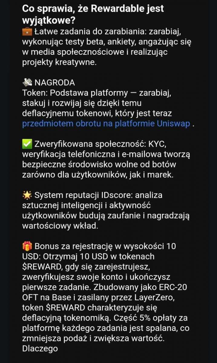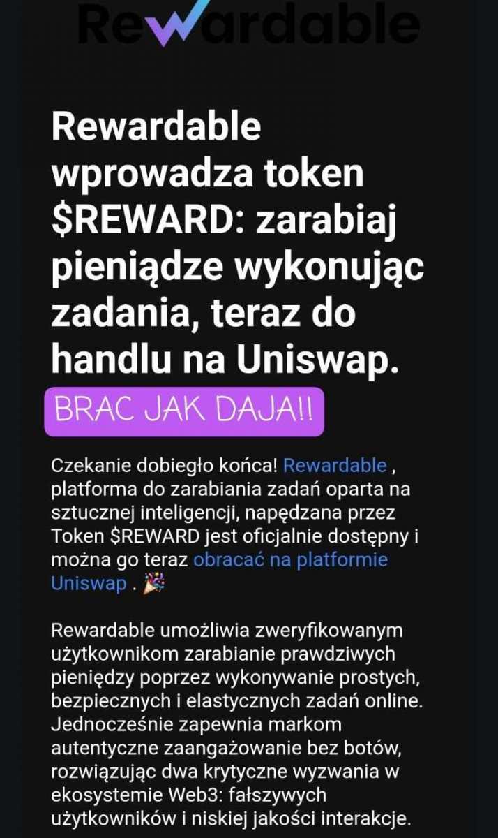 [SCAM] Rewardable app 10$ W $REWARD ZA KYC + 3 SOCIAL TASKI