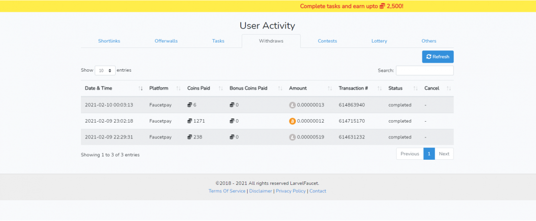 Witam chciałbym państwu przedstawić bardzo łatwy sposób na zarobienie kryptowaluty (100% wypłacalne) Siedziałem dobre kilka dni zanim znalazłem coś godnego polecenia ponieważ większość to scam oraz reklamy które nigdy się nie kończą Do brzegu Aby korzystać ze strony musimy posiadać portfel- https://faucetpay.io/?r=1172045 (będę wdzięczny za założenie konta z mojego refa Wprowadzenie i rozeznanie na stronie 1. Rejestrujemy się na https://larvelfaucet.com/ref/3TfMLemH (z góry dzięki za rejestracje z linku). 2. Potwierdzamy oczywiście konto na email. 3. Zbieramy punkty na stronie są różne możliwości PTC Ads, Faucet, Visit, ShortLinks (najłatwiejsze i najszybsze) oraz inne oferty za granie w gry na androida 4. Nie ma limitów możecie nawet wypłacić 1 satoshi na portfel faucetpay 5. Dostępne kryptowaluty do wypłaty to Bitcoin LiteCoin i DogeCoin Mam fajny sposób który odkryłem dziś aby sobie ułatwić co nie co początek zapraszam osoby które dokonają rejestracji z moich linków po wskazówki W załączniku dodam wypłaty ponieważ w pierwszej kolejności sprawdziłem czy strona jest wypłacalna. Gdy były początki BTC zaspałem nie wiedziałem a teraz BTC kosztuje 170 tys zł więc teraz jestem zdania ze grosz do grosza a może za 5 lat LiteCoin będzie kosztował tyle samo tego nie wiemy . Zapraszam na priv w razie pytań -